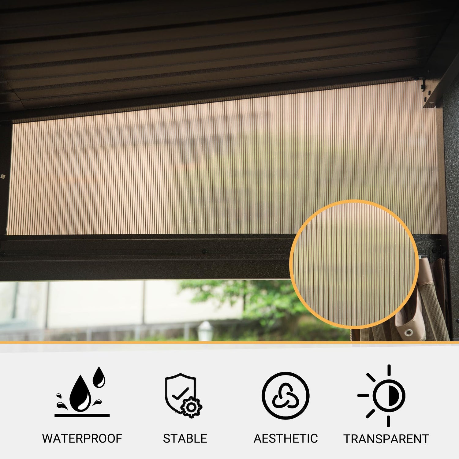 - 🏖️Sturdy and Stylish- The lean-to gazebo's side panels are made of premium polycarbonate, combining durability with an attractive appearance. This not only enhances its strength but also adds a touch of elegance to your outdoor space.