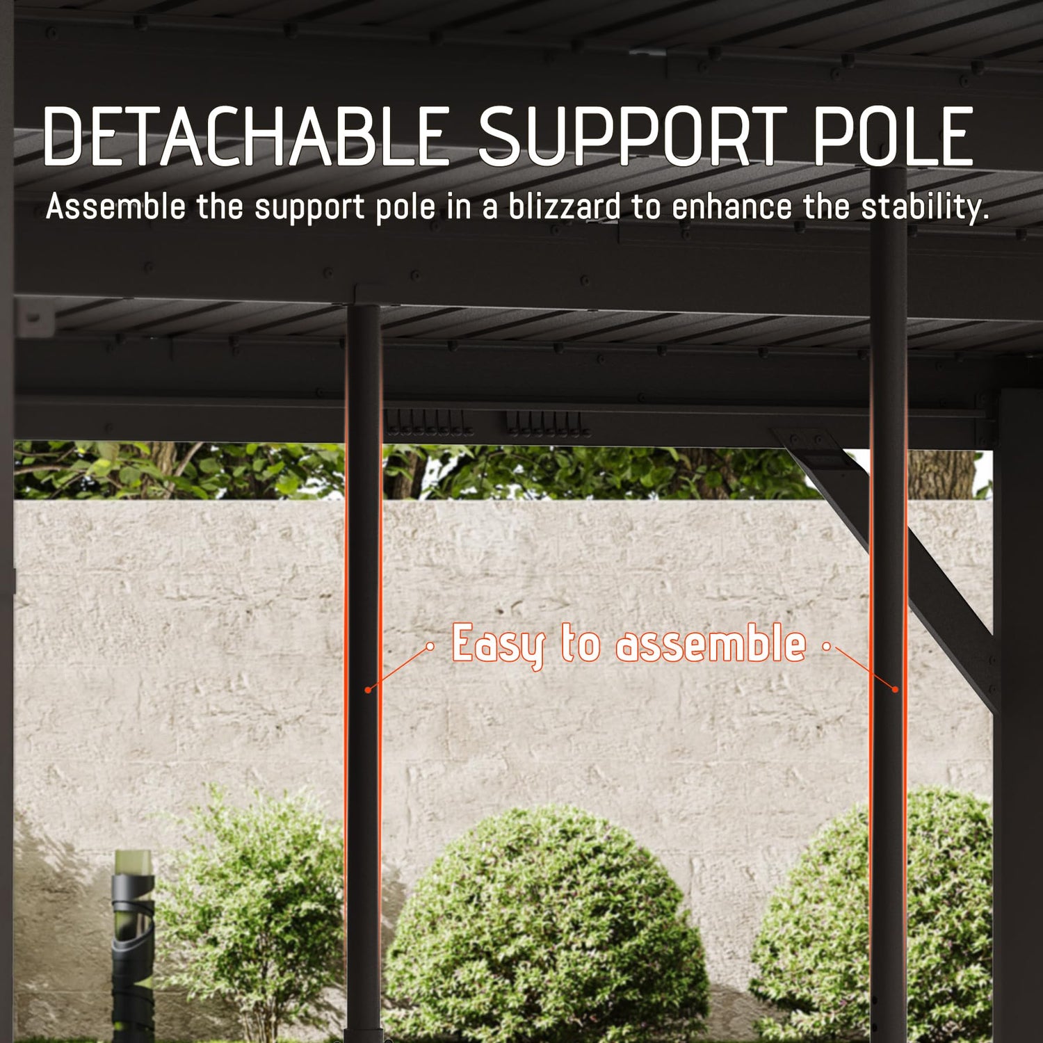 - 🏖️2 Additional Support Poles- The Domi deck pergola comes with two additional support poles that can be effortlessly attached during snowy weather, enhancing its load-bearing capacity without the need for permanent installation.