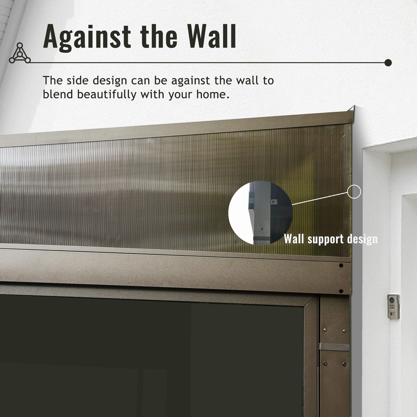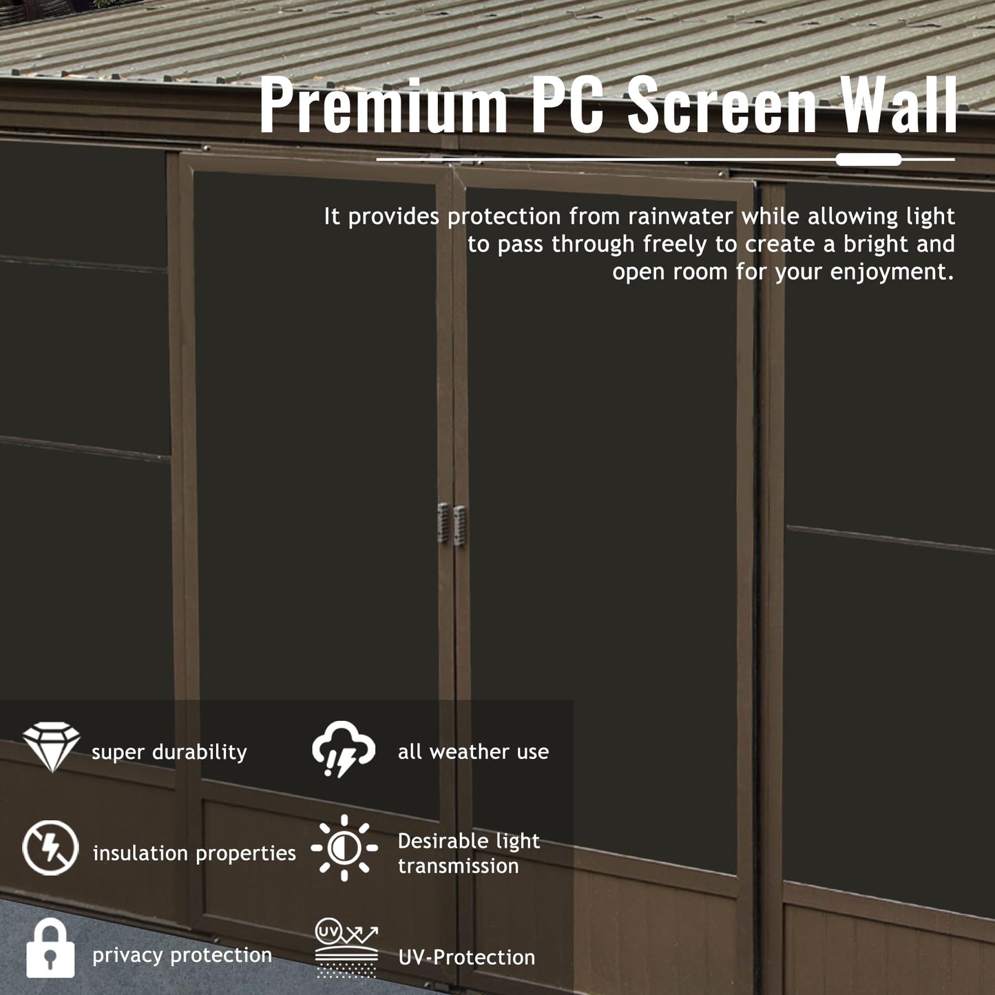 Domi 10x12FT Sunroom Gazebo,Solarium Aluminum Wall Mounted Gazebo with Galvanized Steel Sloping Roof,Lockable PC Screen House,with Front Door&Side Sliding Door,Lean to Gazebo for Patio Deck Lawn