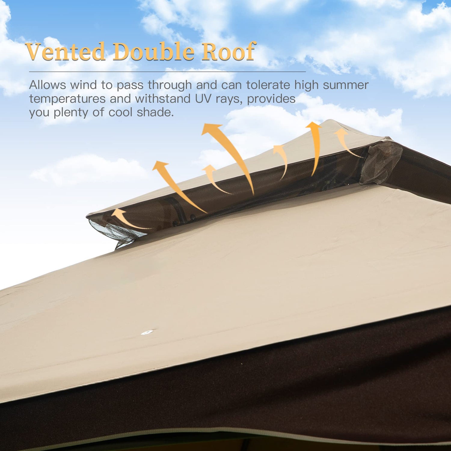 Domi 10'x13' Gazebo, Outdoor Gazebo with Mosquito Netting, Metal Frame Double Roof Soft Top Patio Gazebo Canopy Tent for Deck Backyard Garden Lawns Khaki
