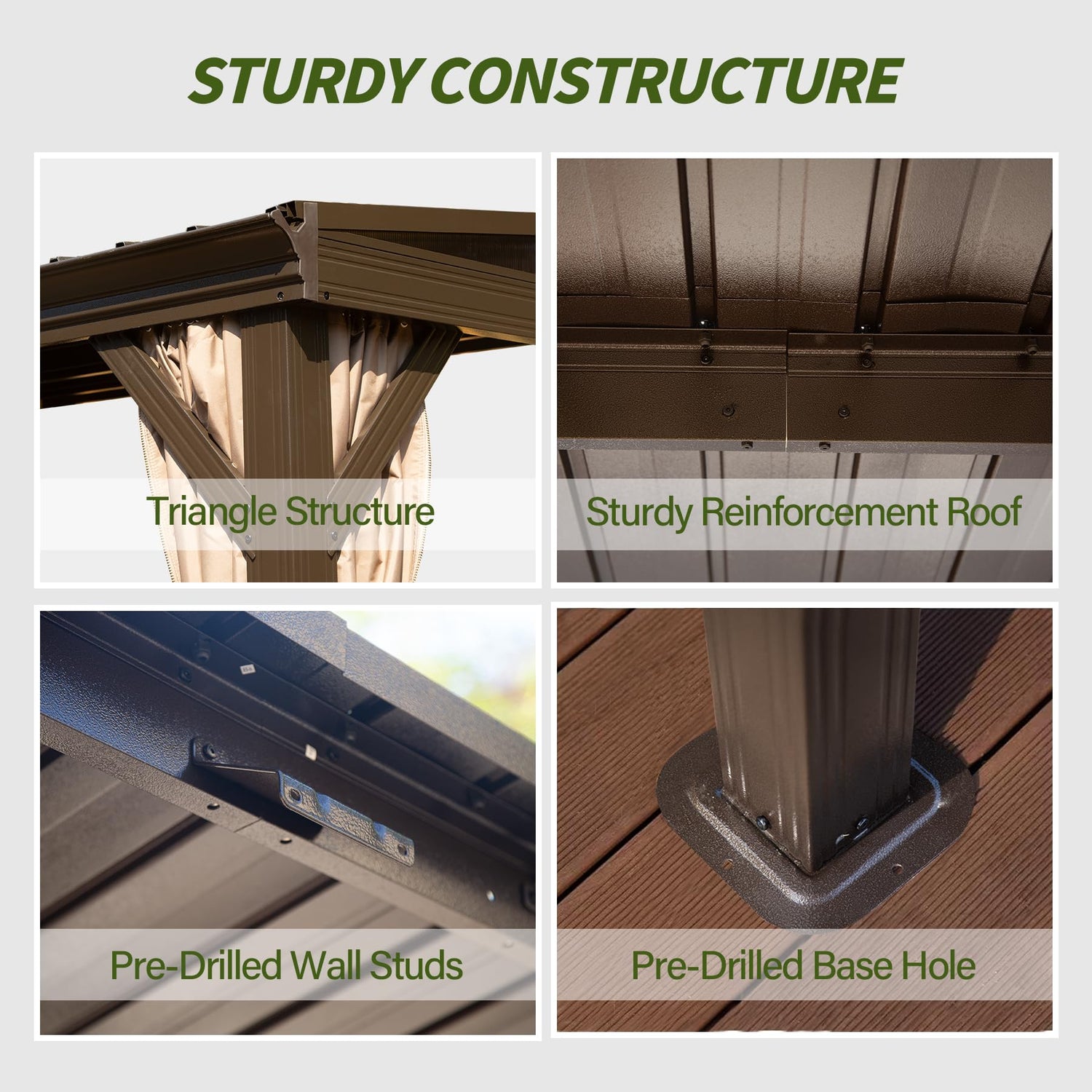 • Extend Space with Wall Mounted Gazebo - The 10’x14’ lean to hardtop gazebo extends your private space to a large extent. Install the domi gazebo at the entrance of your home, you can enjoy your afternoon tea time leisurely. The pc panel on the side can protect you from small rain and partially block the sunlight.