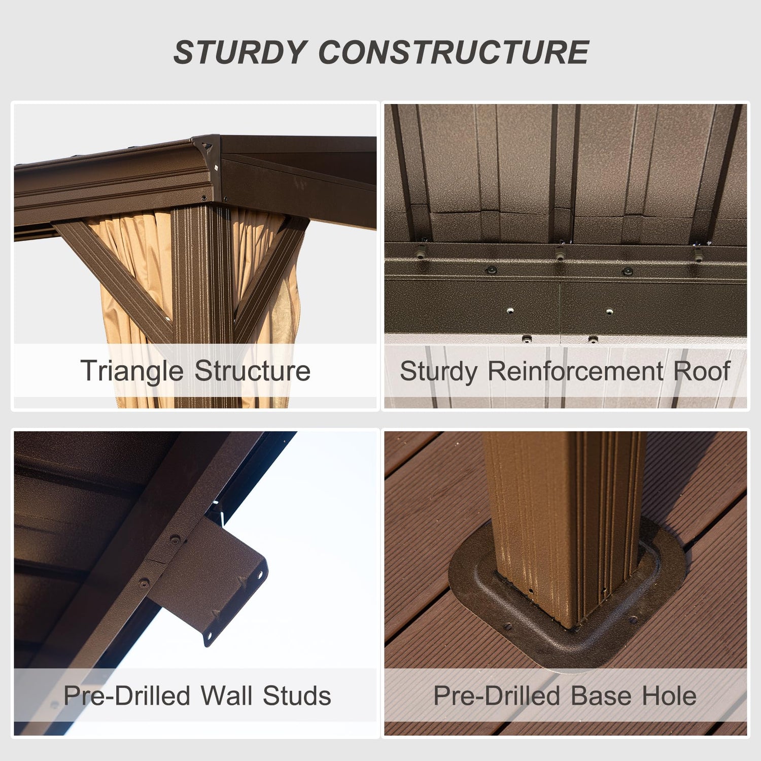 - 🏡🌞Extend Space with Wall Mounted Gazebo - The 12’x14’ lean to hardtop gazebo extends your private space to a large extent. Install the domi gazebo at the entrance of your home, you can enjoy your afternoon tea time leisurely. The pc panel on the side can protect you from small rain and partially block the sunlight.
