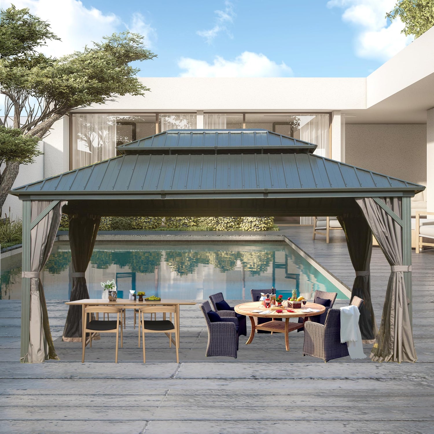 Domi 12' X 16' Hardtop Gazebo, Aluminum Metal Gazebo with Galvanized Steel Double Roof Canopy, Curtain and Netting, Permanent Gazebo Pavilion for Patio, Backyard, Deck, Lawn…