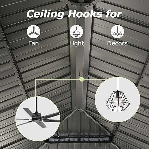 - ❤️🏕️Durable Premium Material- Domi hardtop gazebo pavilion made from durable materials such as aluminum and galvanized steel, can withstand harsh weather conditions such as rain, wind, and snow. It can also resist fading, rust, and corrosion, ensuring that it lasts for many years.