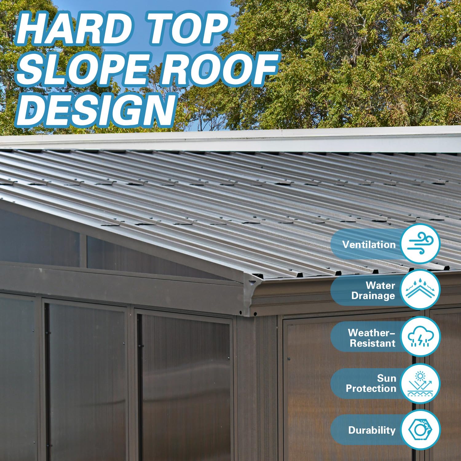 - Galvanized Steel Roof: The Lean-to sunroom features a galvanized steel roof with excellent weight-bearing capacity. The hardtop protects from intense sunlight and rain while blocking 99% of UV rays, creating a shaded, comfortable environment for you and your loved ones