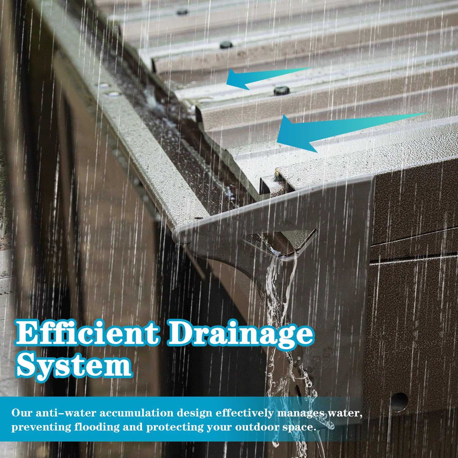 - Slope Drainage System: Designed with a sloping drainage system, this against wall sunroom gazebo quickly channels rainwater and snow melt into gutters, preventing buildup and roof damage. Regular snow clearing helps extend roof life and ensures long-lasting functionality