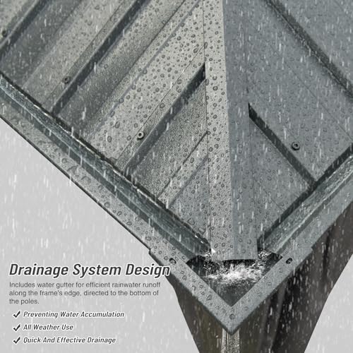 - ❤️Efficient Drainage Solution- Domi's gazebo features a self-draining system that prevents water pooling, minimizing structural damage, reducing maintenance needs, and ensuring lasting gazebo quality.