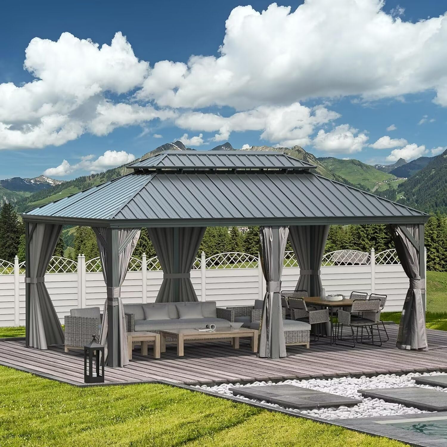 - 🏡Included Netting & Curtains: The hardtop gazebo 12x20 designed with double-track detachable sidewalls and double-sided zipper for quick sliding.The bugs netting maintain good ventilation and open view.The privacy curtains provide a safe and comfortable space and also keeps the space warm.