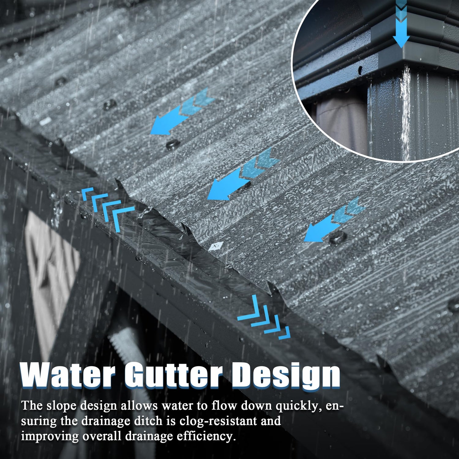 • Efficient Water Drainage: No more worrying about rainwater! The sloped roof of the metal gazebo 14'x20' ensures that rainwater drains quickly and safely, preventing buildup. Perfect for year-round outdoor enjoyment!