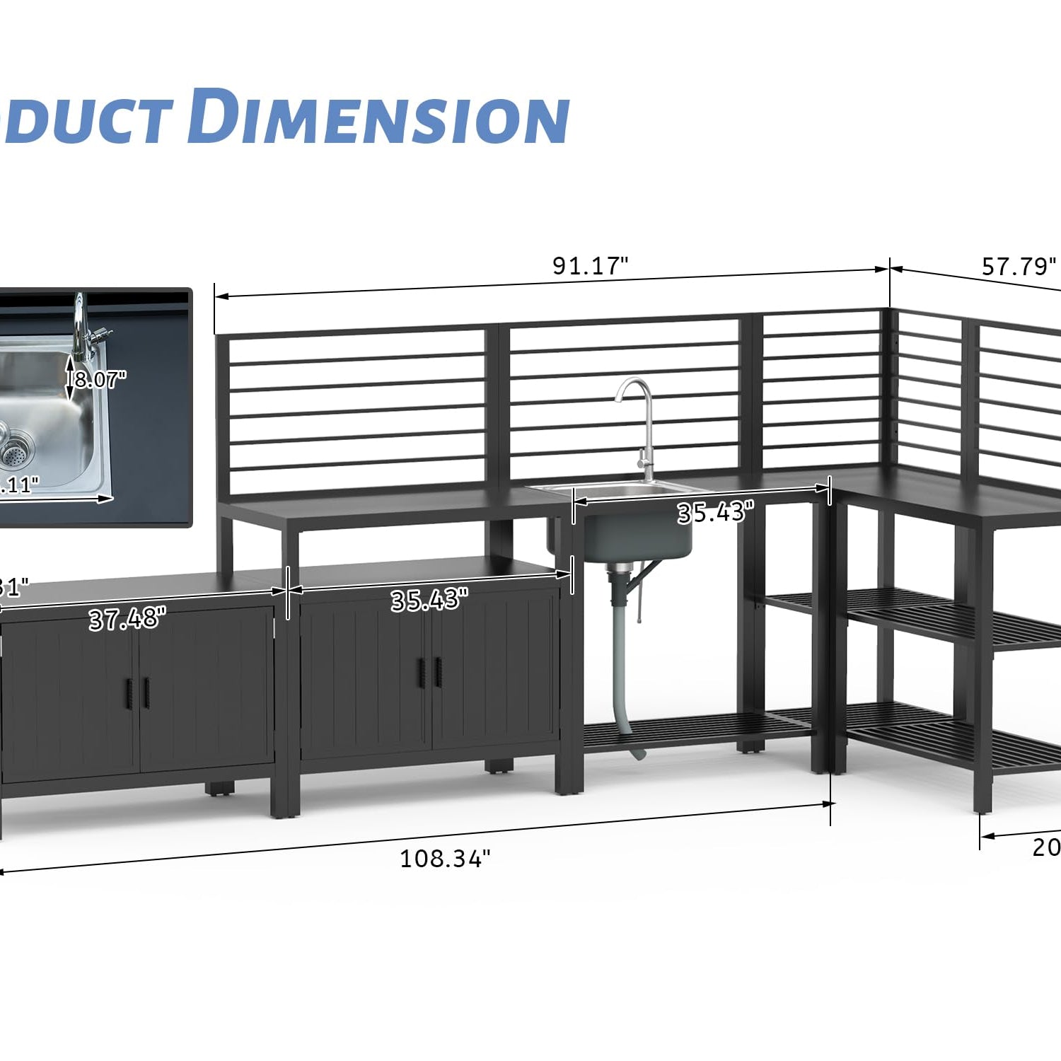 - Stainless Steel Sinks-- Domi outdoor kitchen featuring a stainless steel faucet and an 8-inch-deep stainless steel sink, quick hand washes and dish rinses are a breeze. Simply connect the faucet to a nearby hose and connect the drain tube to a pail or catch basin and your outdoor clean-up station is complete.