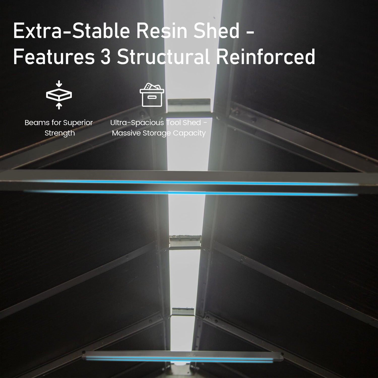 - Durable Double-Wall Resin Construction: Built with reinforced resin panels and interlocking wall connectors for enhanced durability, this shed resists warping, denting, and weather damage—ideal for year-round use.