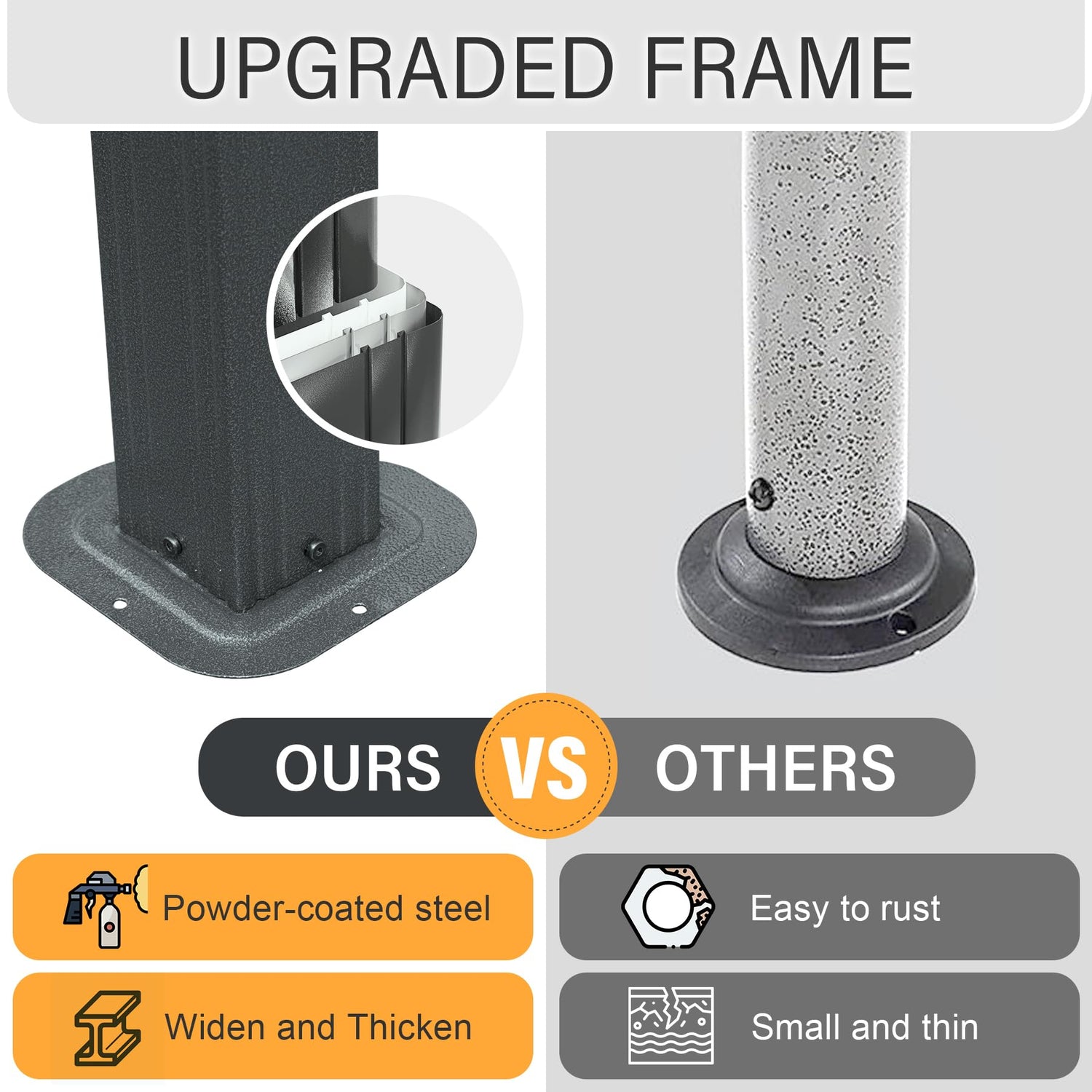 - Double-Tier Roof for Superior Comfort: Designed to enhance airflow, the 6'x10' Grill Gazebo keeps your outdoor space breezy and enjoyable, even on the hottest days. The sturdy roof also blocks harsh sunlight and prevents water pooling, ensuring reliable protection in any weather. Perfect for year-round outdoor living.