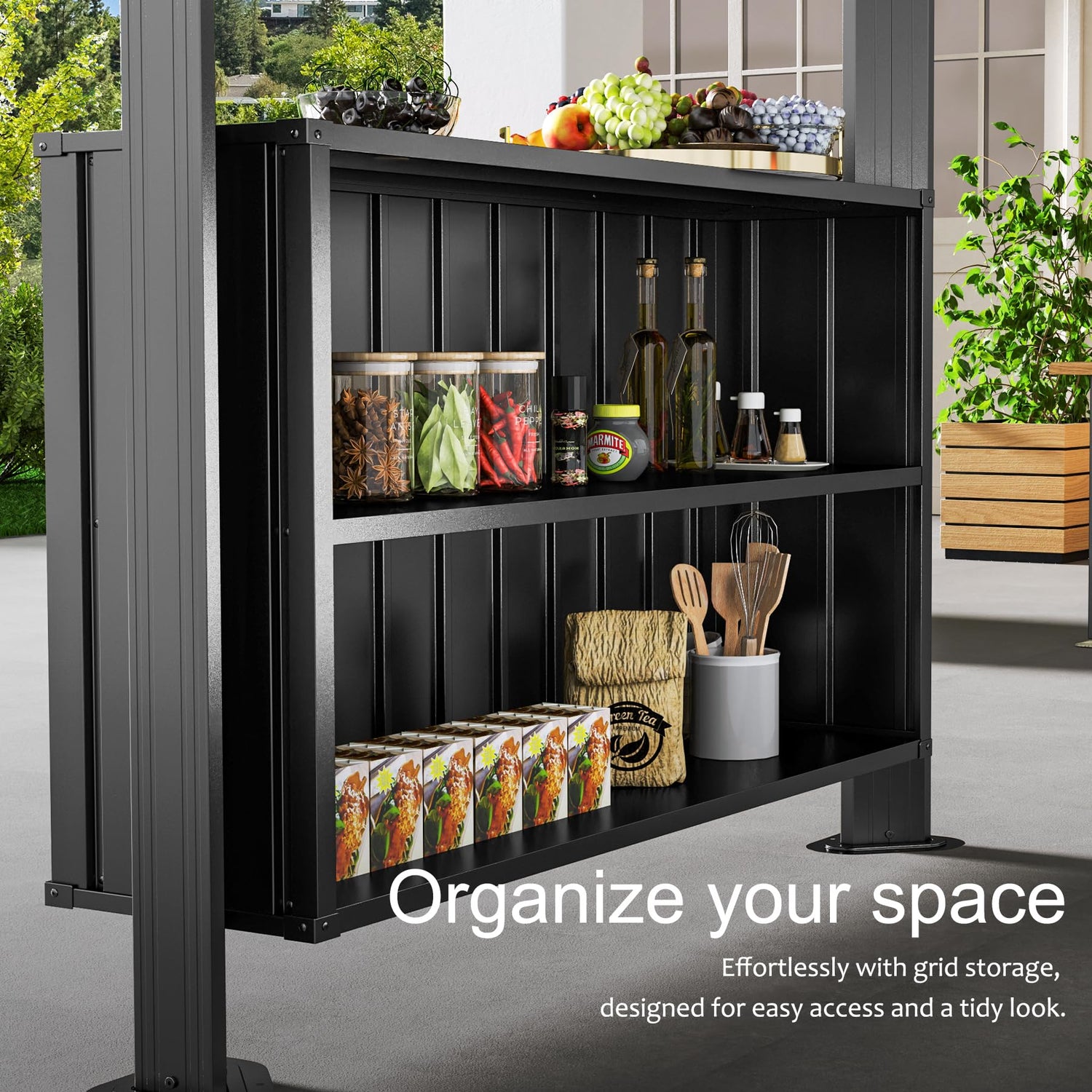 - Convenient Dual Storage Cabinets: Keep your outdoor area organized with two built-in storage cabinets. Whether it's grilling tools, charcoal, or other essentials, these spacious compartments in the grilling shelter ensure everything is within arm’s reach for a smooth and stress-free cooking experience.