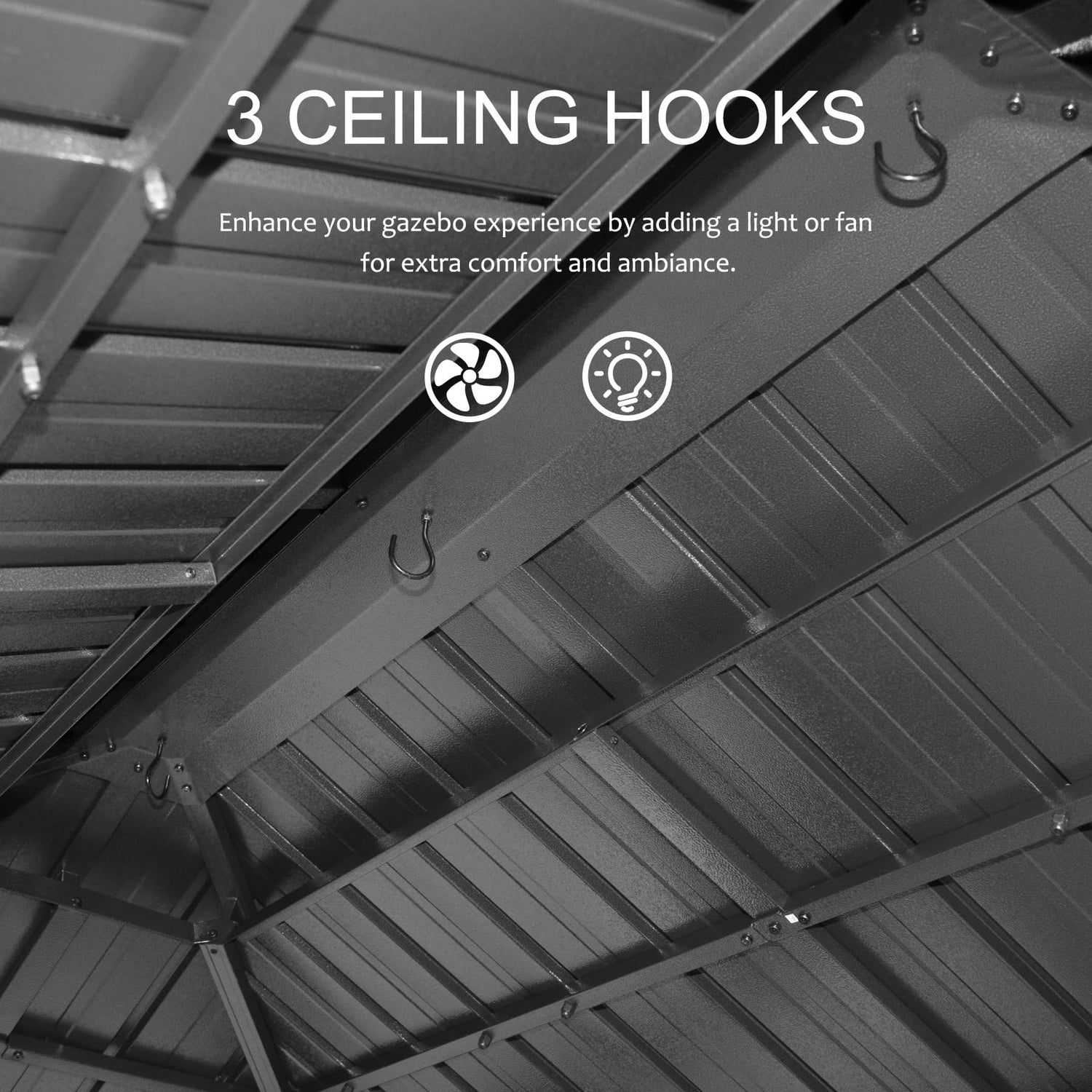- Built-In Hooks for Added Convenience: Add a personal touch to your outdoor BBQ Gazebo with the built-in ceiling hooks. Perfect for hanging string lights, fans, or grilling accessories, these hooks make it easy to create a functional and inviting space for evening parties or casual cookouts.