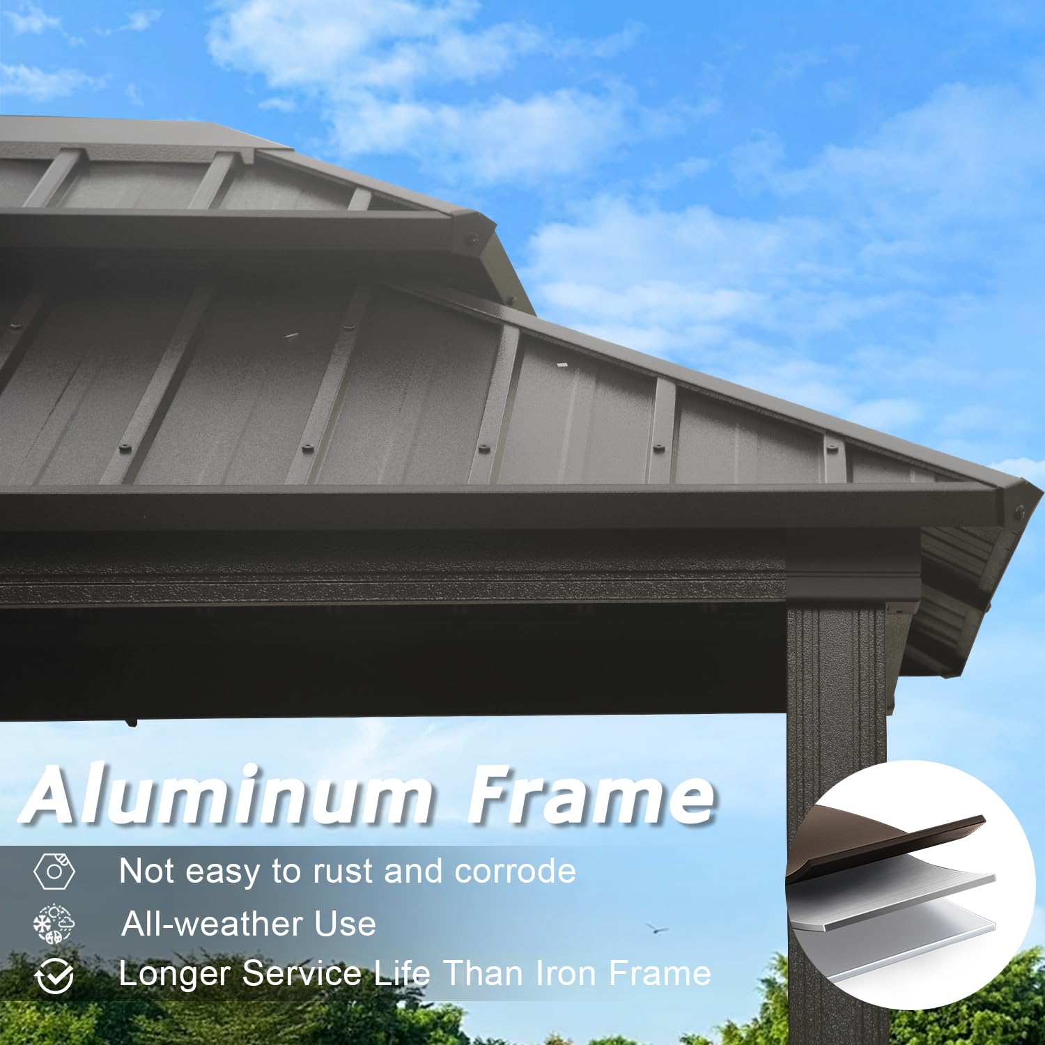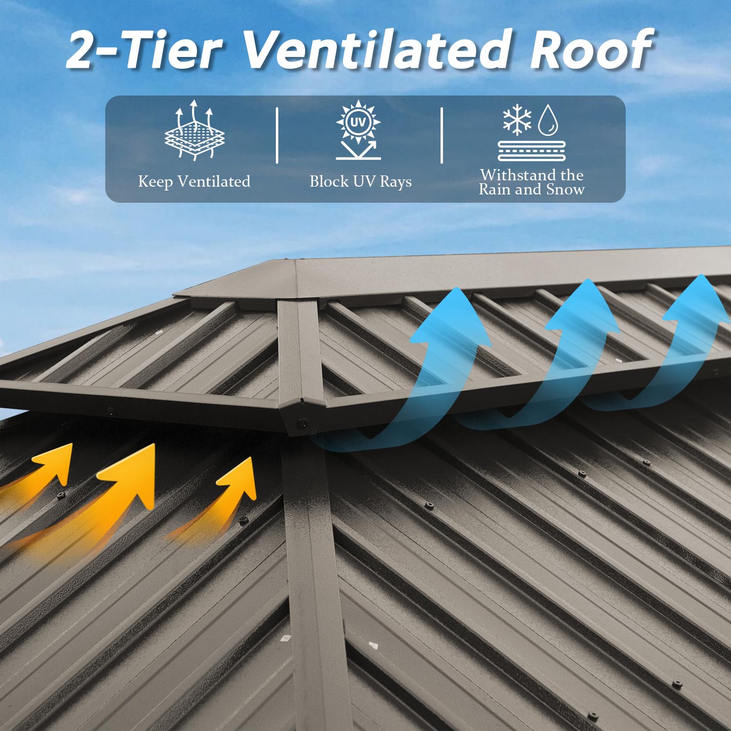 - Double-Roof Design - This grill gazebo features a powder-coated galvanized steel roof designed to resist UV rays and corrosion. The double metal roof design, allowing smoke from the grill to disperse quickly and facilitating drainage during rainy days, preventing water accumulation.