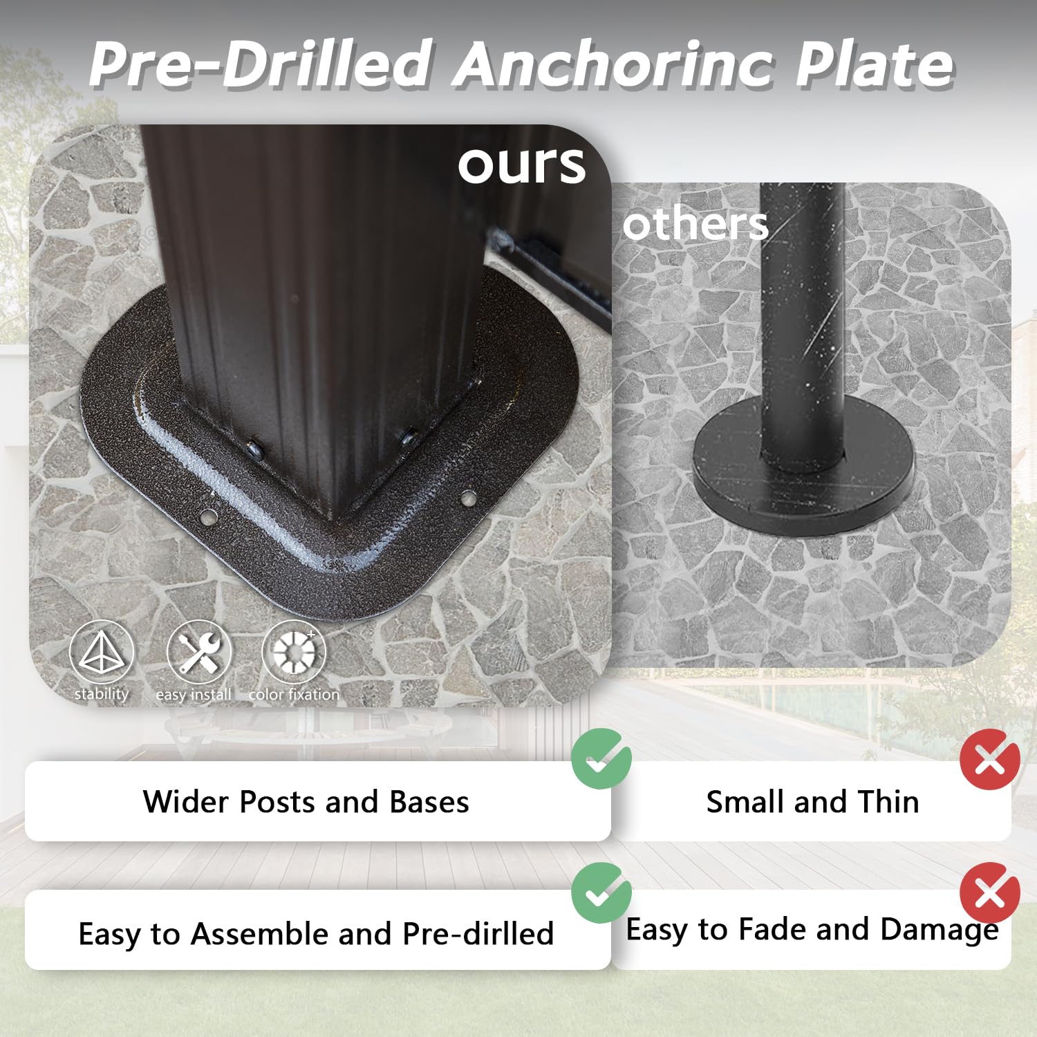 - Robust Metal Frame - Built with a high-quality powder-coated galvanized steel frame and reinforced with triangular braces, this grill shade provides excellent stability and strength. Pre-drilled bases allow secure anchoring on solid surfaces, offering reliable performance in windy and rainy conditions