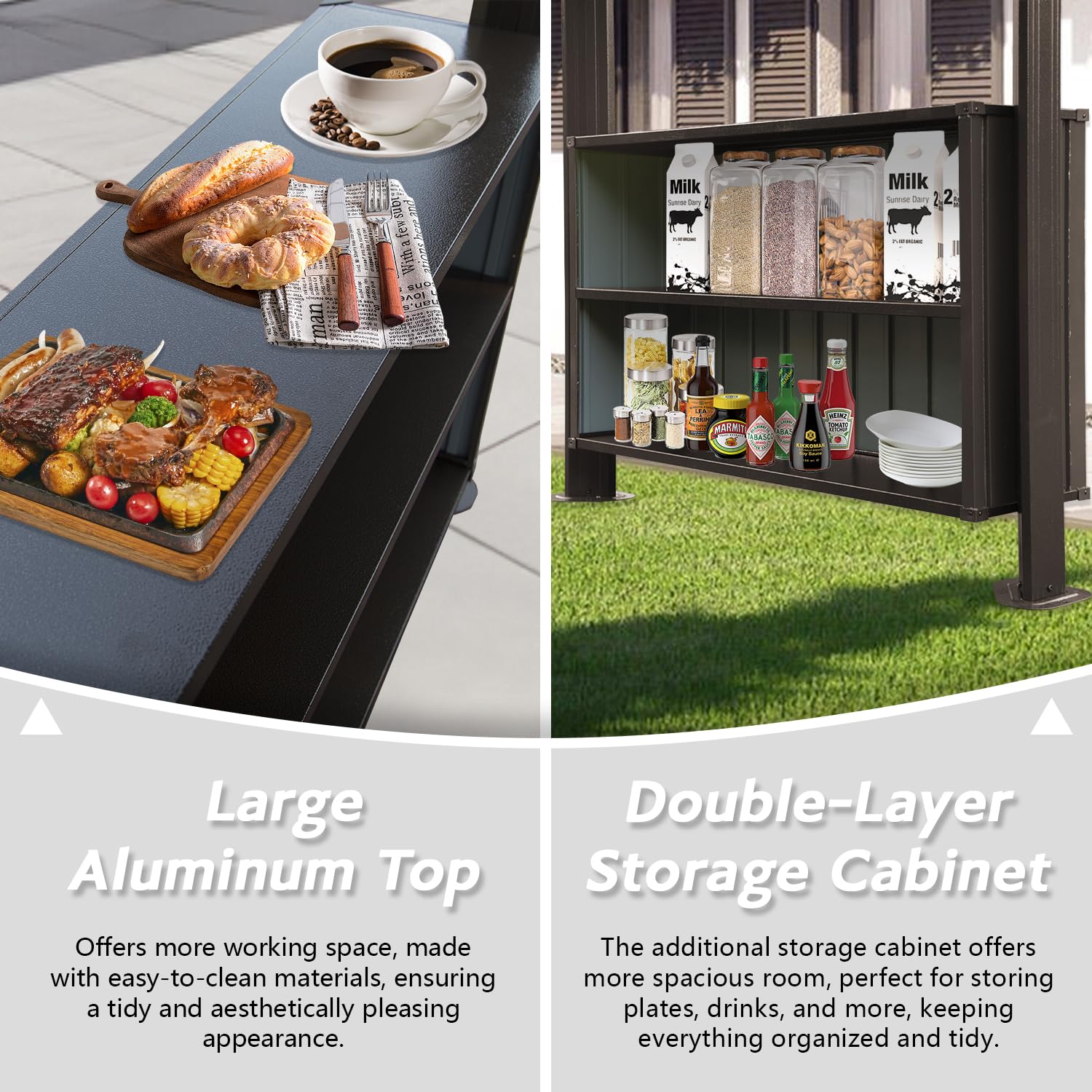 - Spacious 2 Layer Storage Cabinets - Equipped with 2 practical cabinets, this 6x10 grill canopy gazebo provides space for food prep and storing grilling essentials. Keep your cooking tools and ingredients organized and easily accessible, enhancing your outdoor cooking efficiency
