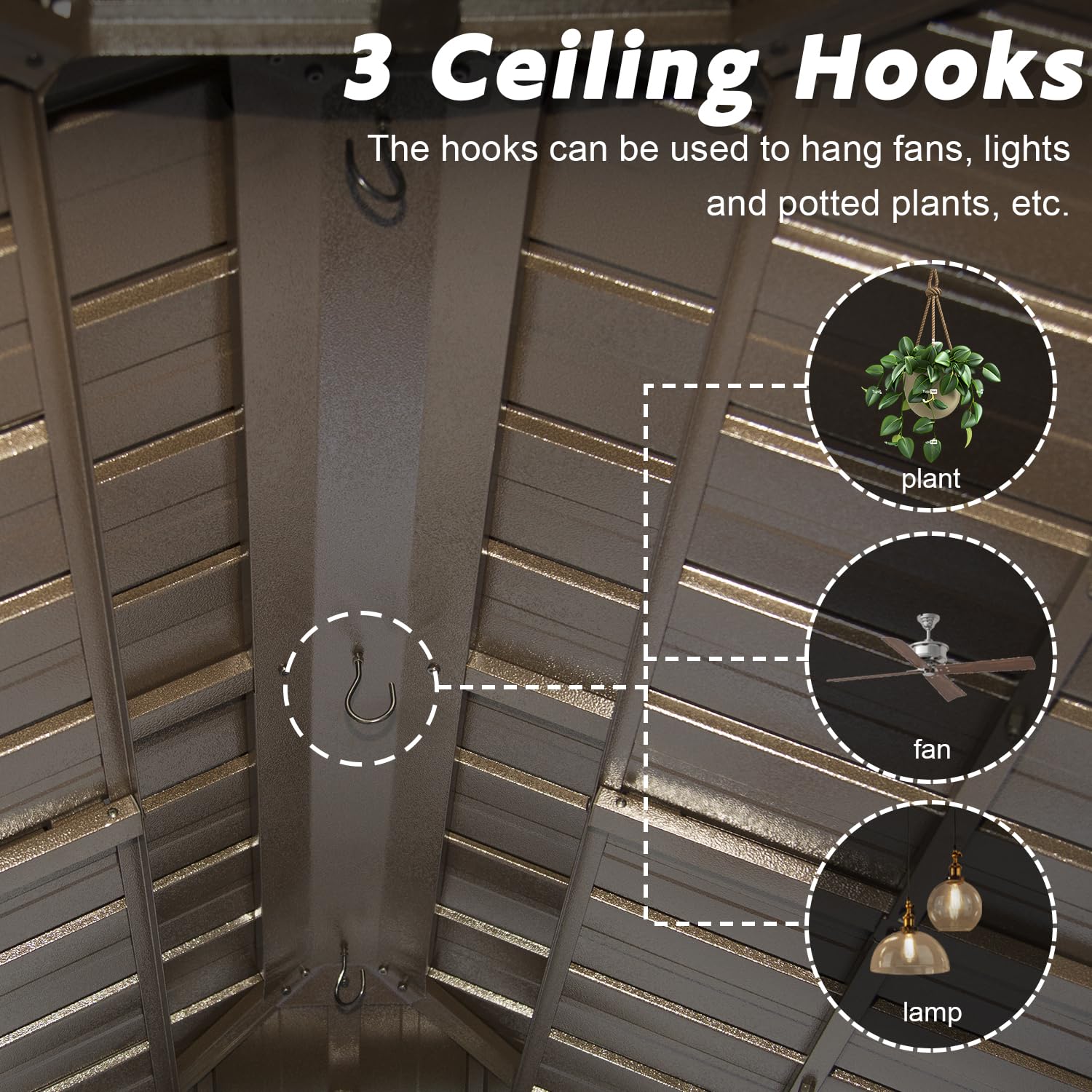 - Practical Ceiling Hooks - The Domi 6x10FT bbq gazebo includes four ceiling hooks, ideal for hanging cooking utensils, lights, or decorations. Maintain an organized cooking area while adding convenience and personalization to your outdoor space