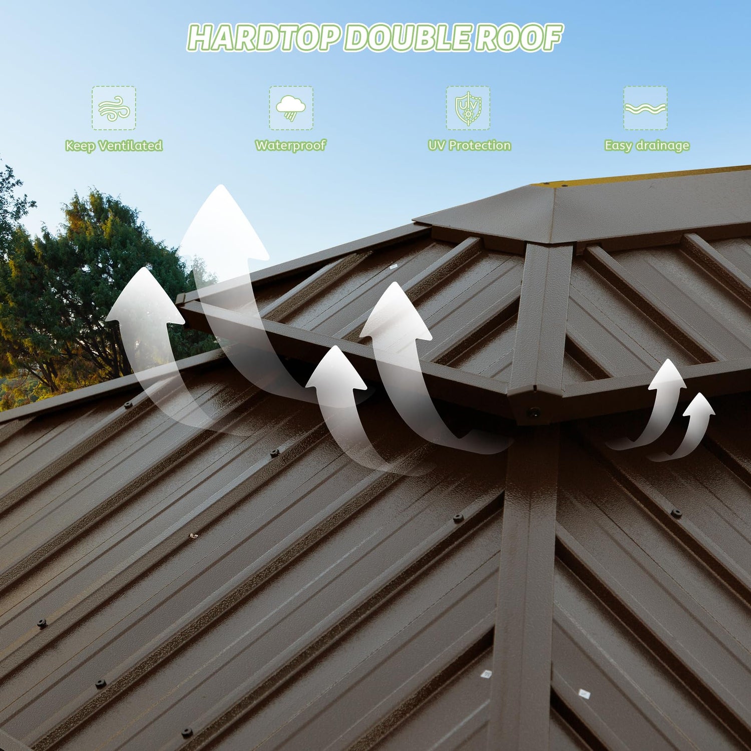 - Stable Metal Frame: Built with a heavy-duty metal frame and finished with a rust-resistant coating, this outdoor gazebo offers exceptional durability. The pre-drilled anchoring bases with expansion screws ensure strong stability, making it a reliable and long-lasting addition to your outdoor space.