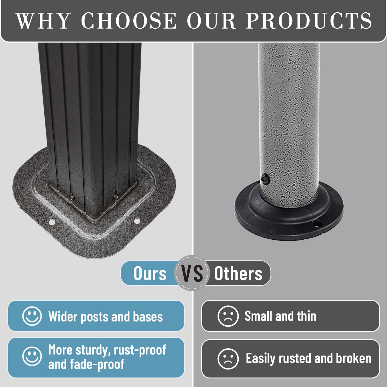 - 🌞Durable & Stable Aluminum Frame- Constructed with a powder-coated aluminum pole, the gazebo's frame is rust-proof, fade-resistant, and durable for long-term use. Pre-drilled bases and triangular reinforced beams ensure stability even in high winds.