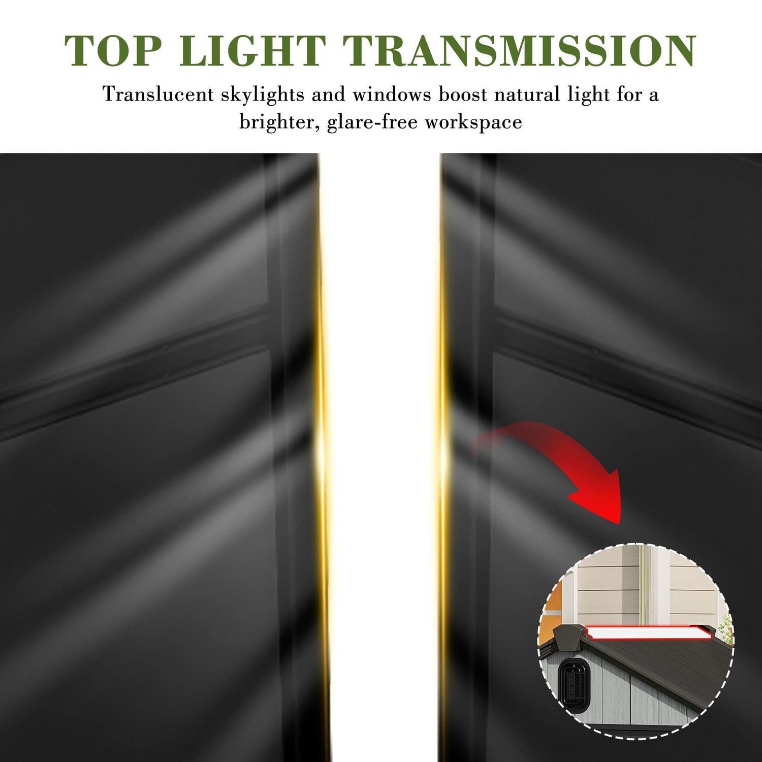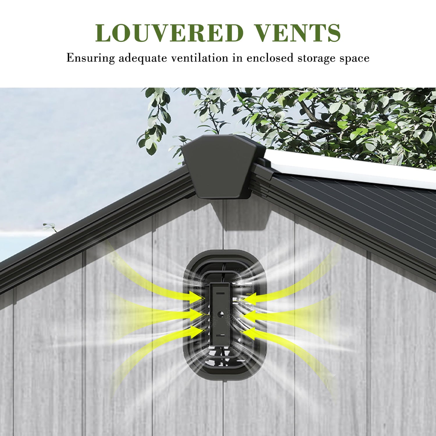 - Transparent Windows & Louvered Vents: Featuring transparent skylight and windows, the tools shed maximizes natural daylight for improved visibility and comfort. The louvered vents ensure optimal air circulation to effectively prevent odor buildup.