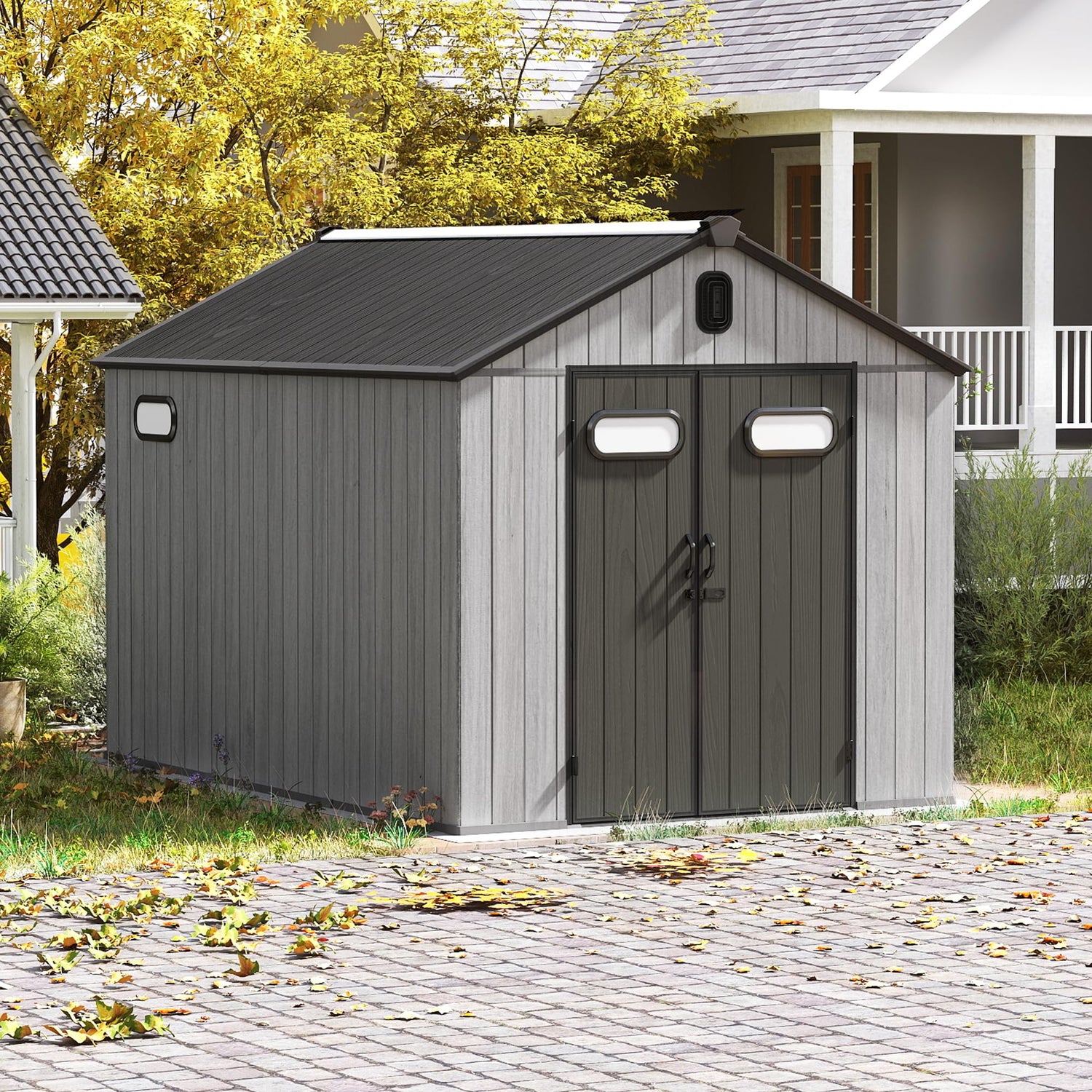 Domi 8x10FT Outdoor Resin Storage Shed with Transparent Windows & Louvered Vents, Plastic Tool Shed with Double Lockable Doors & Gable Roof, Outside Garden Shed for Backyard, Patio, Lawn, Grey