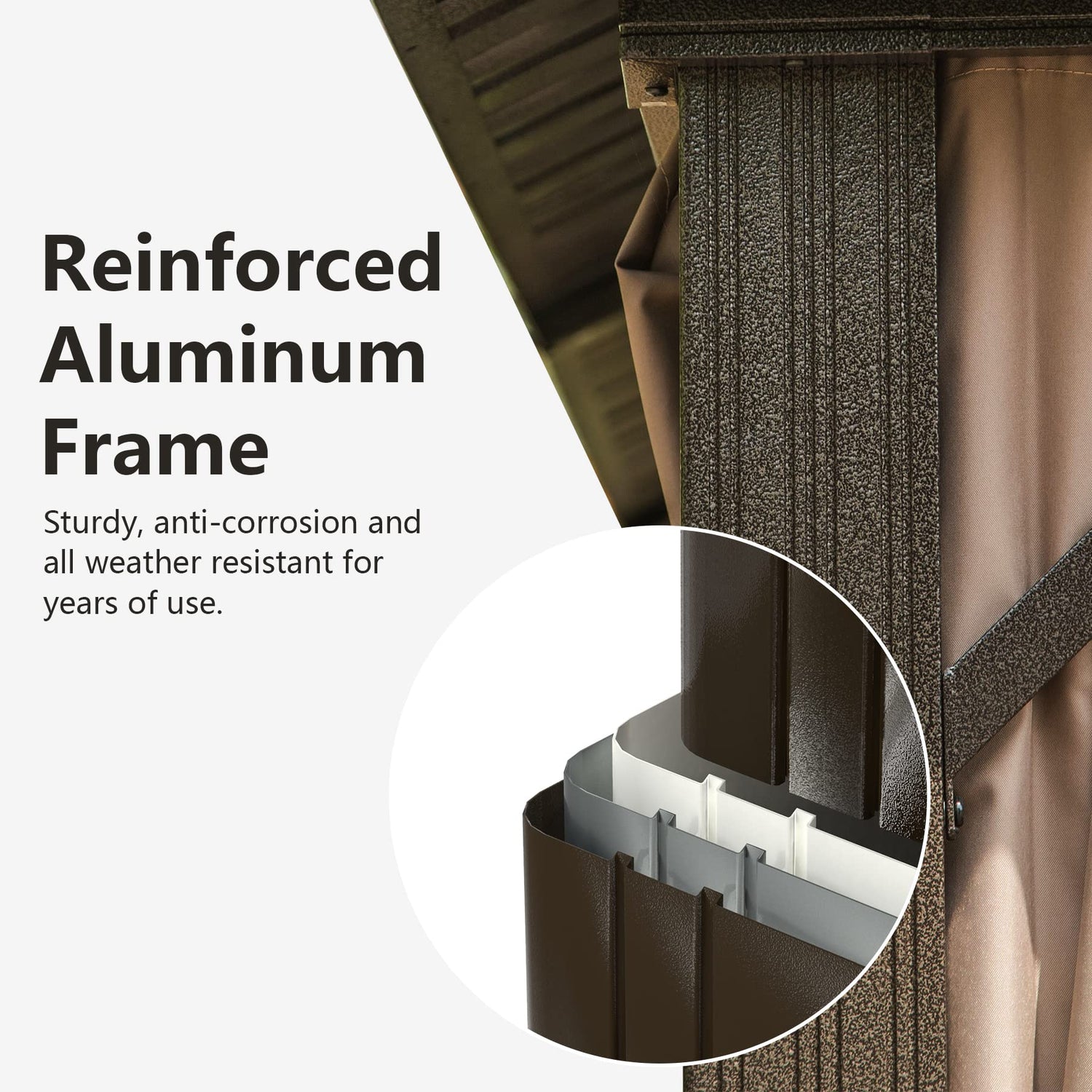 Domi Hardtop Gazebo 10' X 12', Permanent Outdoor Galvanized Steel Roof Gazebo with Aluminum Frame, Pavilion Metal Gazebos with Netting & Curtains for Garden, Patios, Lawns, Parties(Dark Brown)