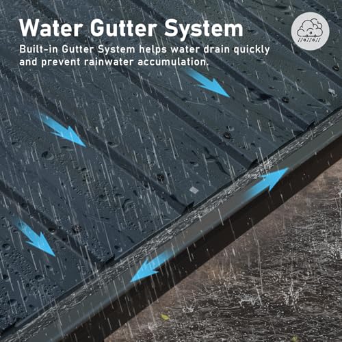 - [Built-in Gutter System] Rainwater is collected on the roof by our integrated drainage system and then flows via the gutter and down the interior of the column to the ground. This function allows you to enjoy the peace and pleasure of outdoor living even on wet days without any disruption caused by the rain. If you appreciate quality, get the Domi 14x22FT gazebo for a smooth outdoor experience.