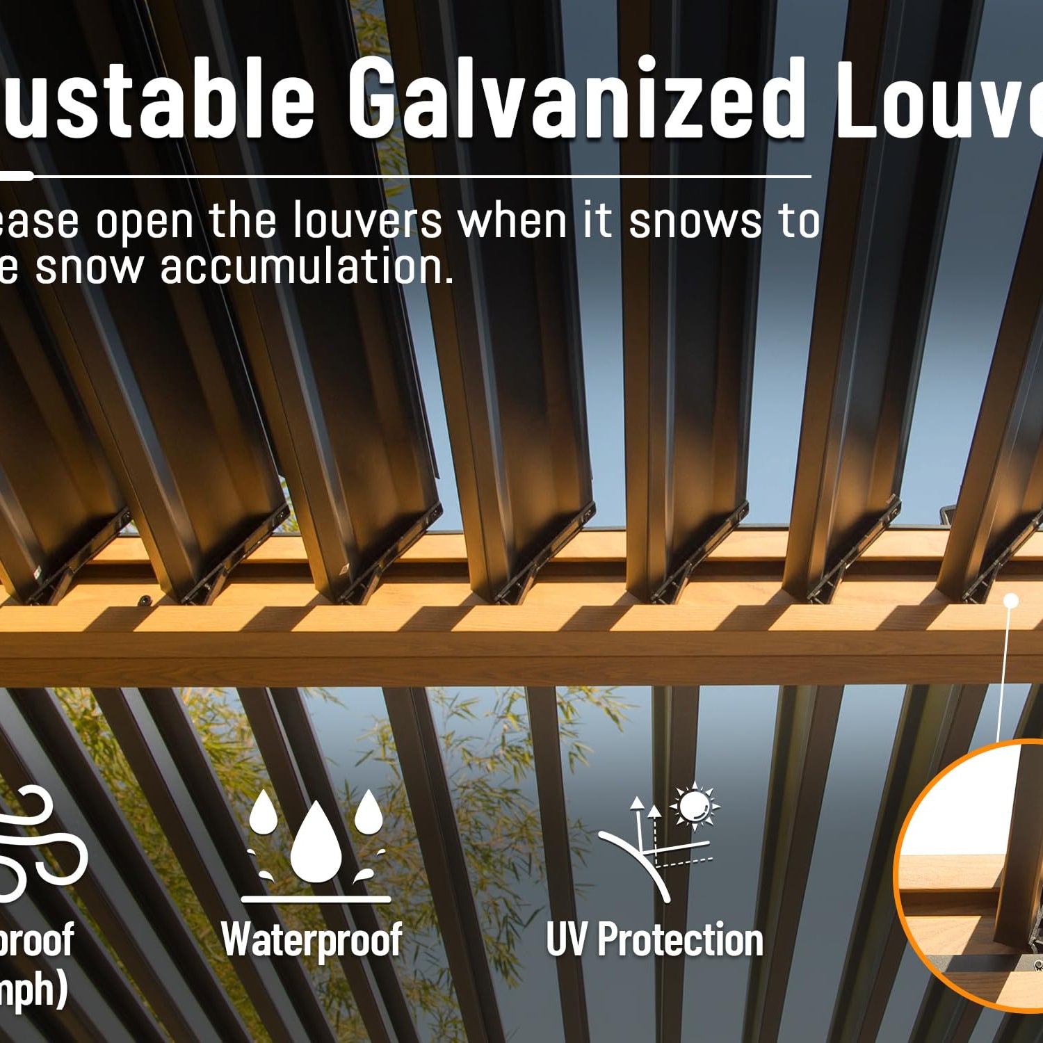 - 💛🍹Multipul Usage- Unlock unlimited potential with our versatile louvered pergola! Whether you're crafting a cozy outdoor lounge, hosting a lively garden party, or seeking shade from the sun, it's your go-to solution. Effortlessly transform your outdoor space for any occasion.