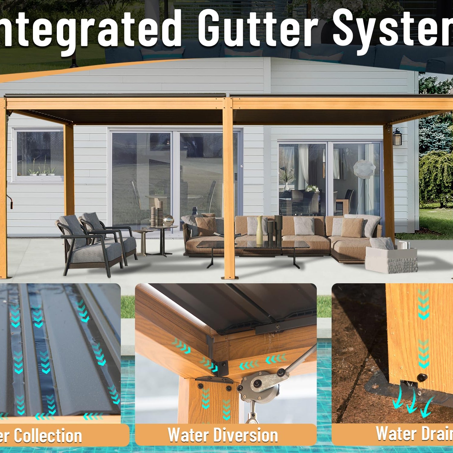 - 💛☔Advanced Drainage System- Domi outdoor pergola's advanced drainage system efficiently collects rainwater, channeling it down through 6 pillars, ensuring you stay dry during summer BBQs or any events. Enjoy shelter from sun and rain while relishing the soothing sound of rainwater cascading into collection gutters.