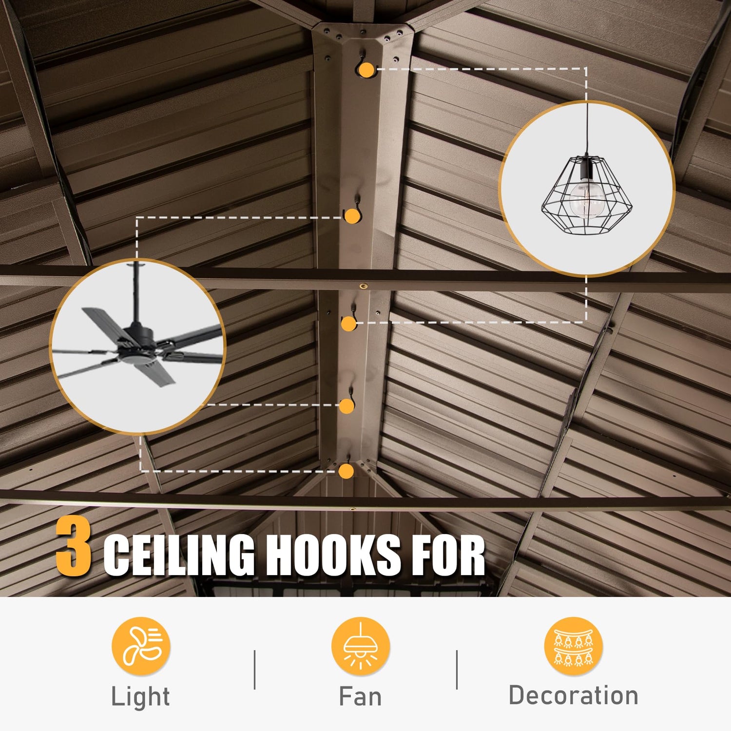 - ❤️Stability and Durability- The galvanized steel metal top and sturdy aluminum frame provide the metal gazebo with the ability to withstand heavy snowfall in winter and offer unbeatable stability in windy conditions.
