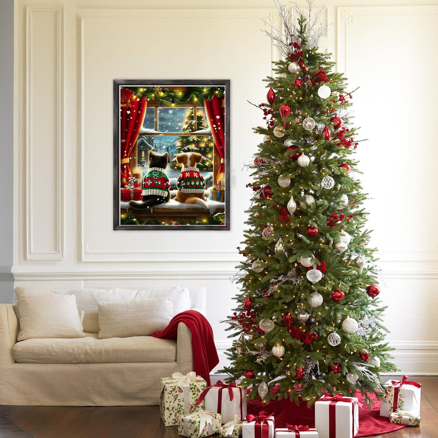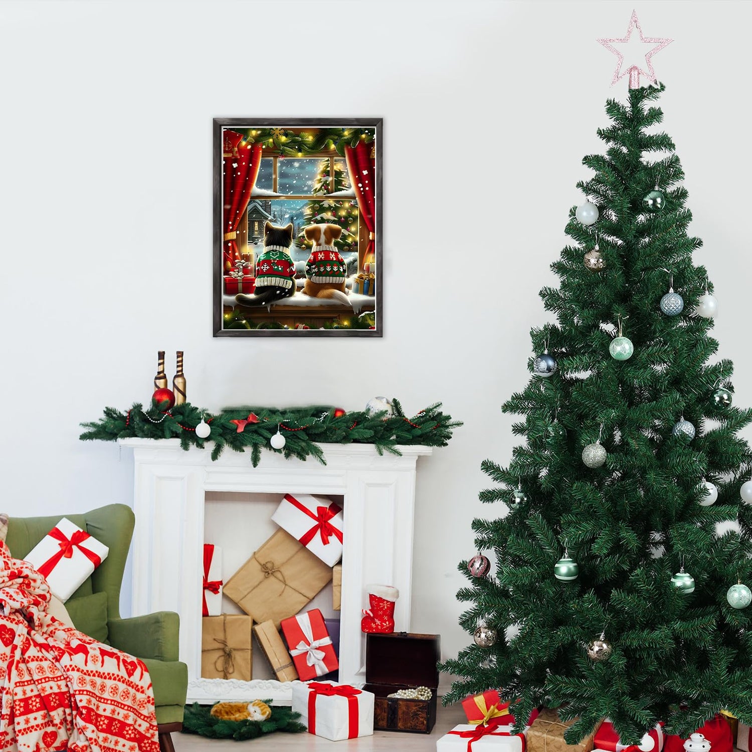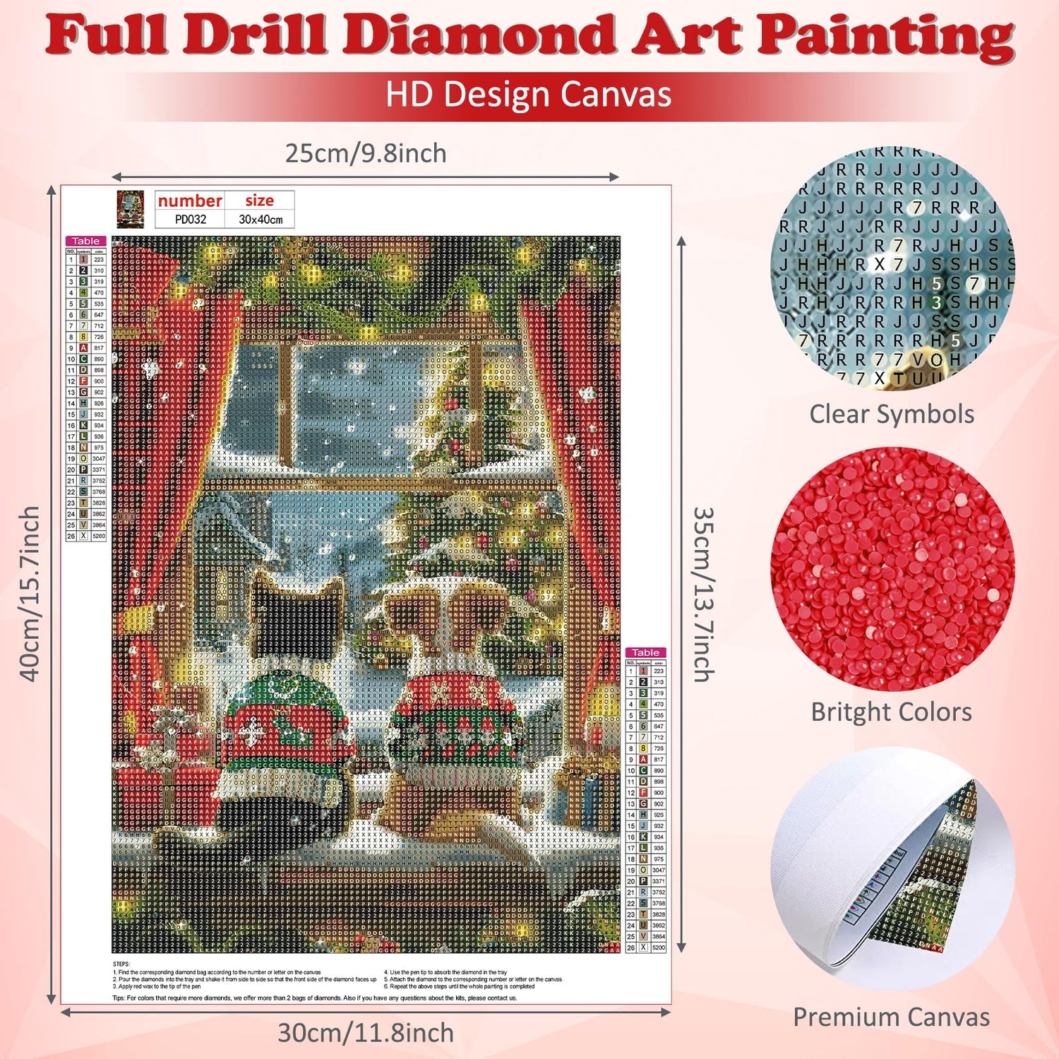 DOMROM Christmas Diamond Painting Kits, Dog and Cat 5D Diamond Art Kits,Gem Art Painting with Diamonds Dots, Arts and Crafts for Beginners Adult Wall Decor 12 x 16inch