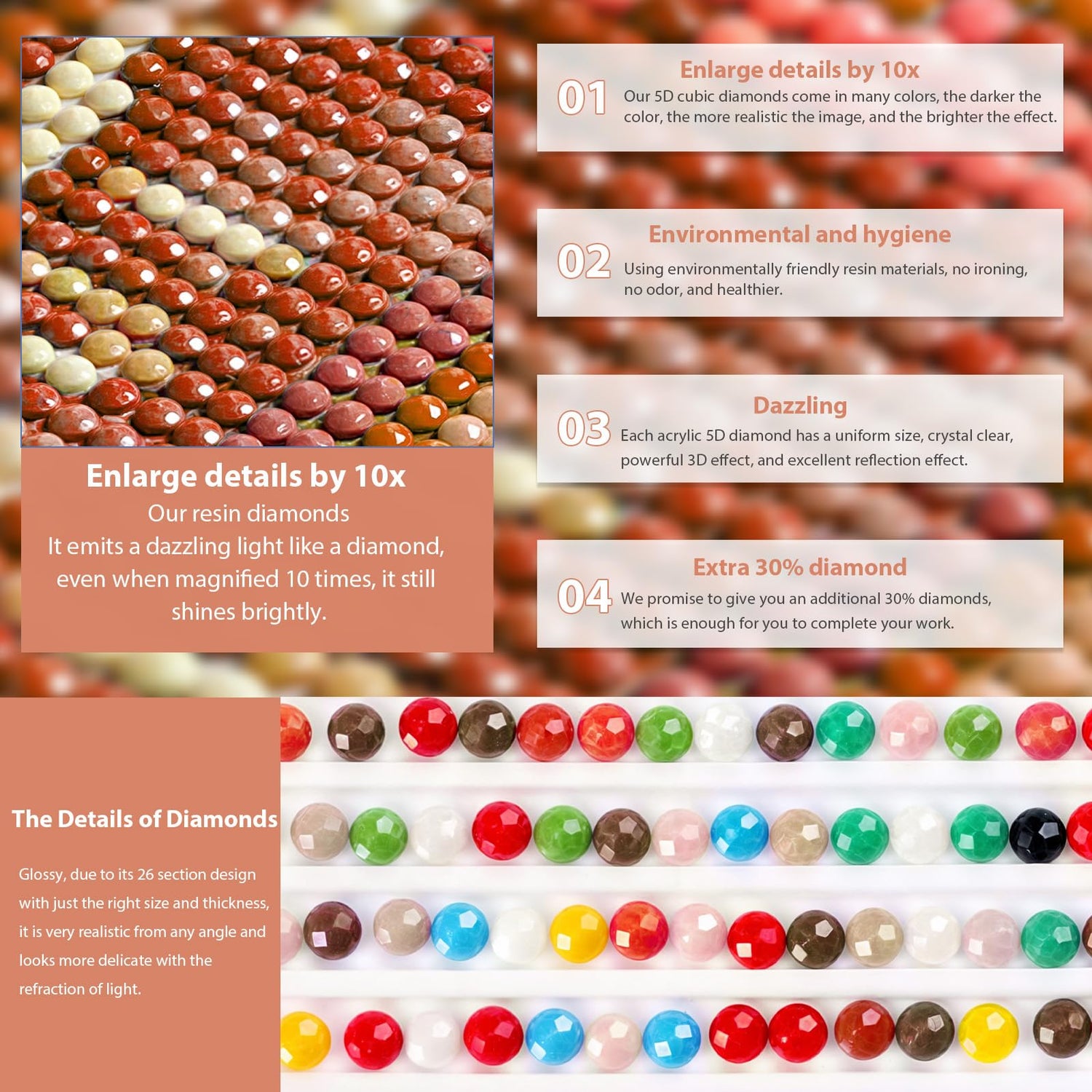 - 【Diamond Painting Kit Included】 1* new design plastic tray, self-sealing bags and enough round diamonds. You get about 30% extra diamonds in every color. A diamond canvas kit lets you make stunning diamond art, no artistic skills required