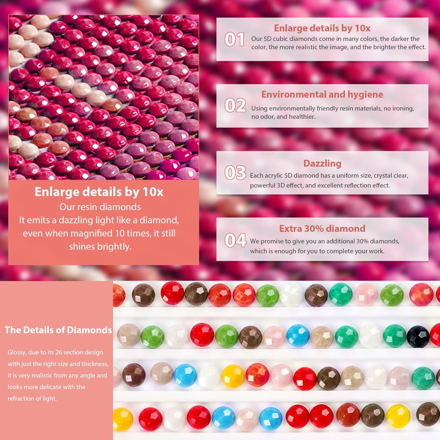 - 【What Is Diamond Painting】 5D Diamond painting kit is a new fashion craft, more realistic than other decorative paintings, simple and easy to learn, it is the most popular DIY decor at the moment, colorful and three-dimensional, easier than cross stitch, more beautiful, and keep longer