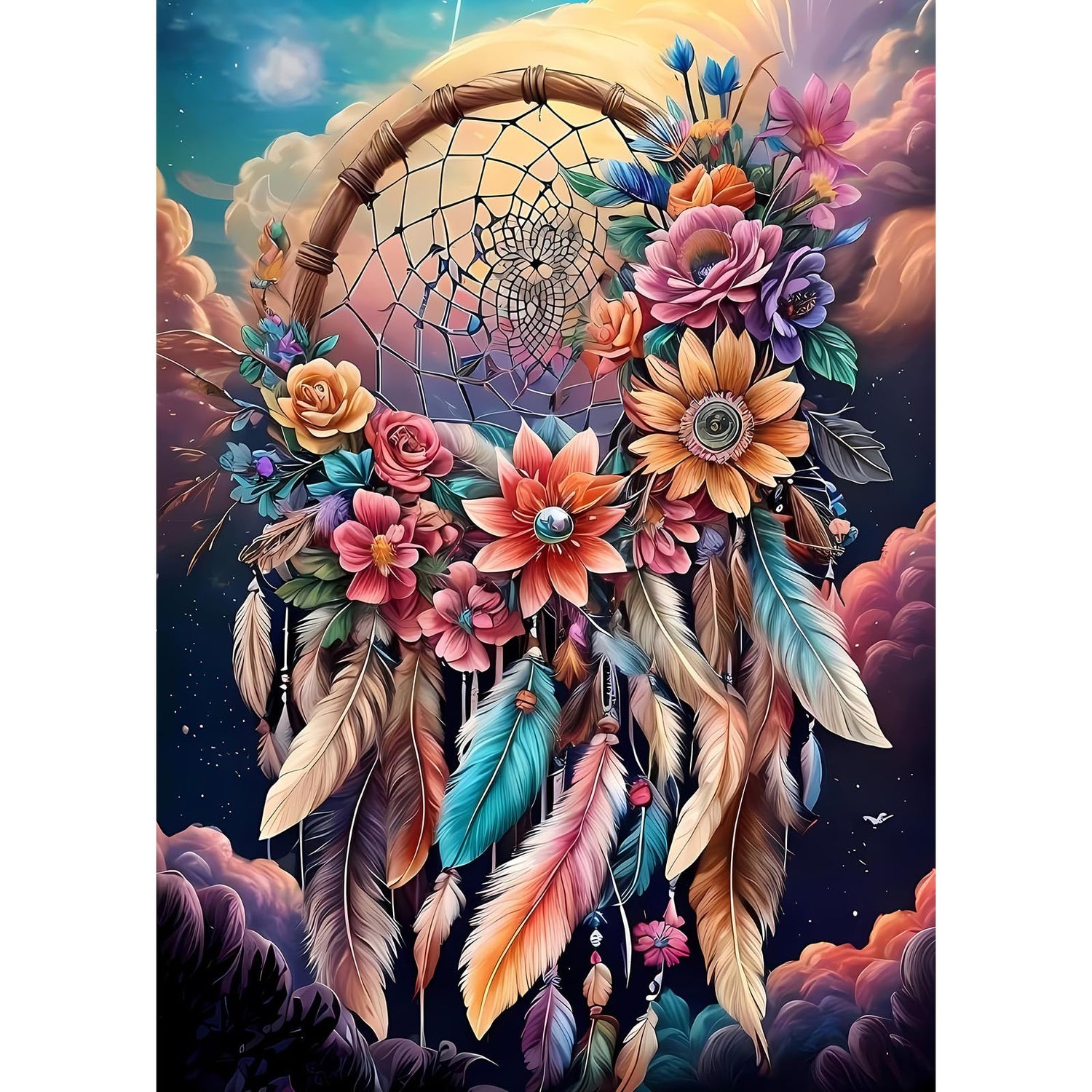 DOMROM Dream Catcher Diamond Painting Kits for Adults,Dream Catcher Full Drill Diamond Dots Painting for Beginners,Round 5D Paint with Diamonds Pictures Gem Art Painting Kits DIY Craft Kit 12x16inch