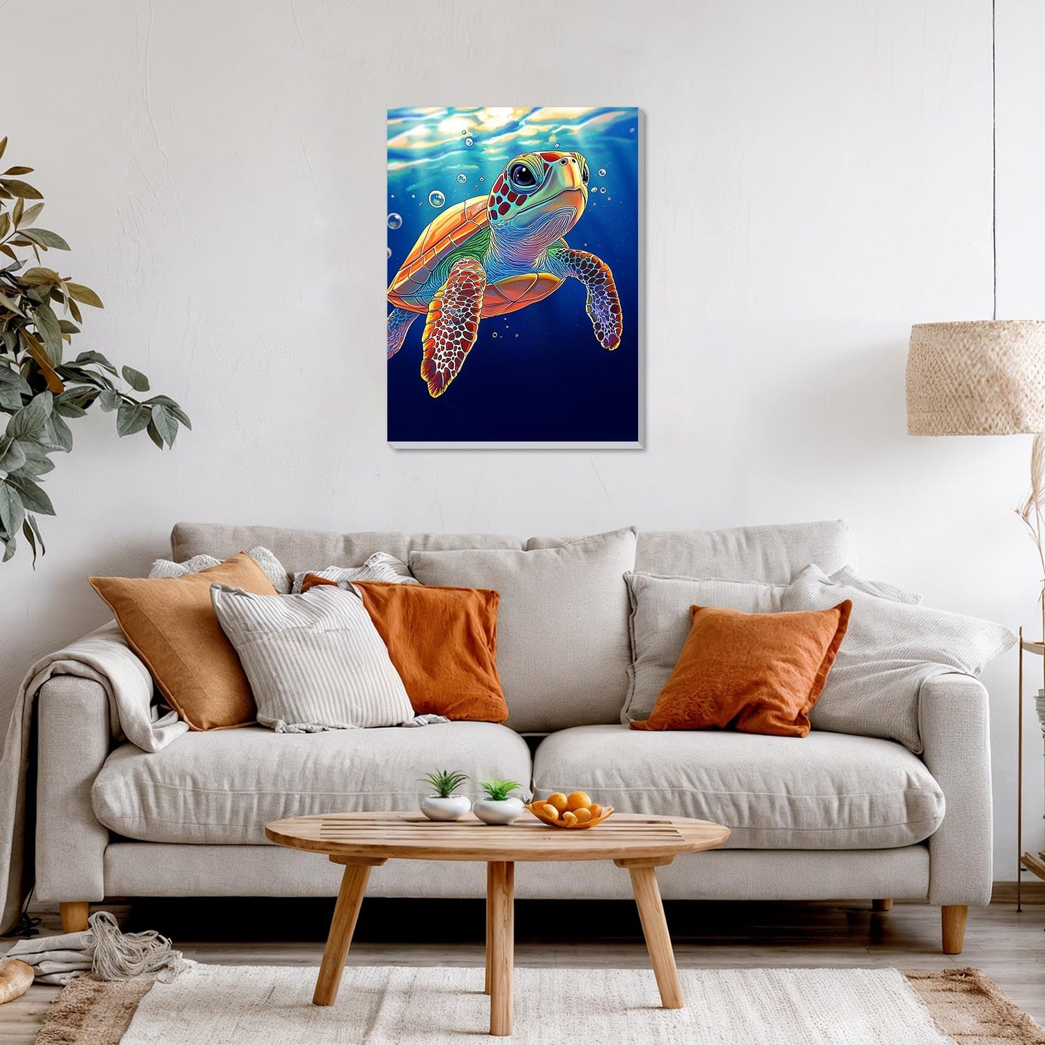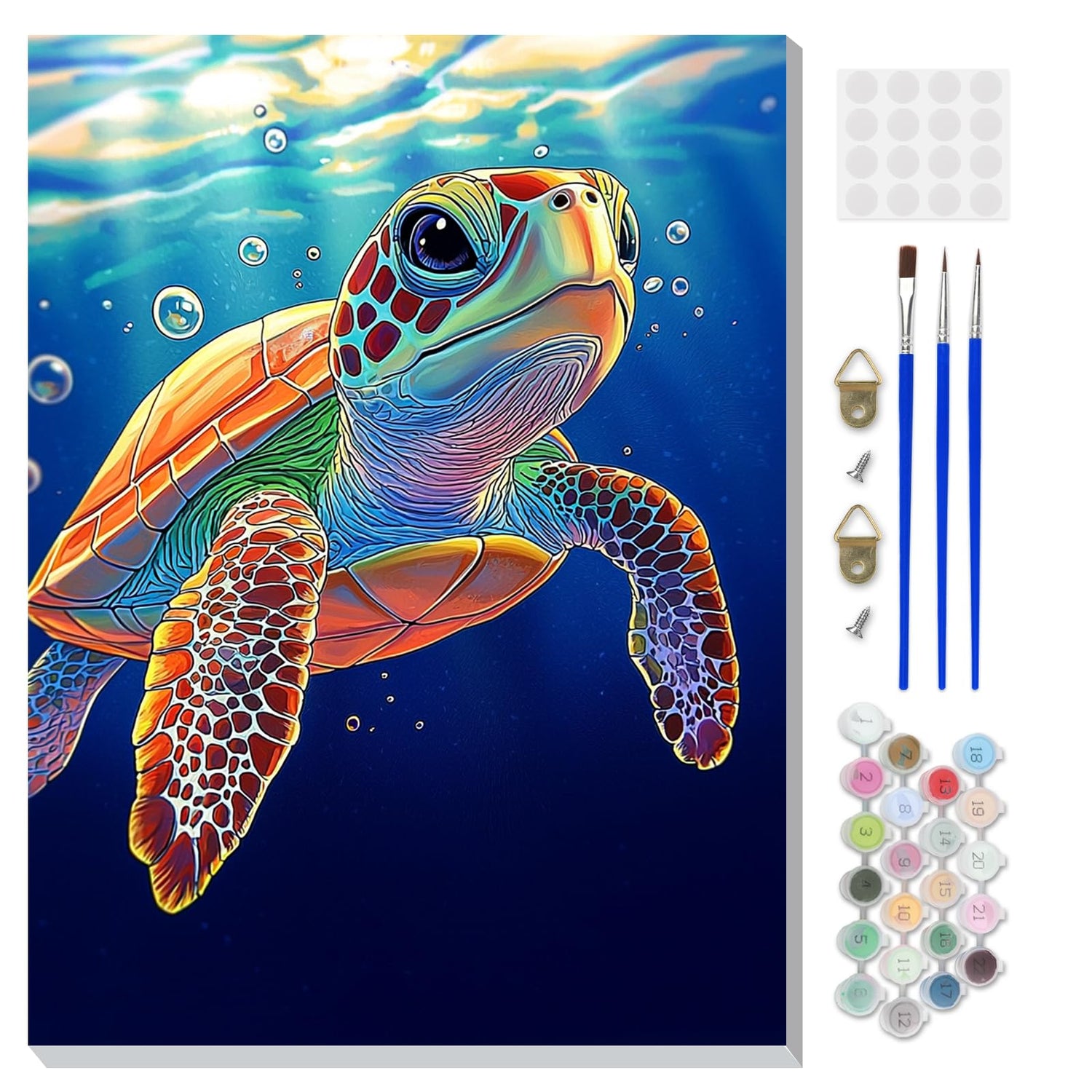 DOMROM Framed Paint by Numbers Kit for Adults Beginners with Wooden Easel, DIY Sea Turtle Paint by Number Kit on Canvas, DIY Oil Painting Kits for Home Wall Decor Gift 12x16inch