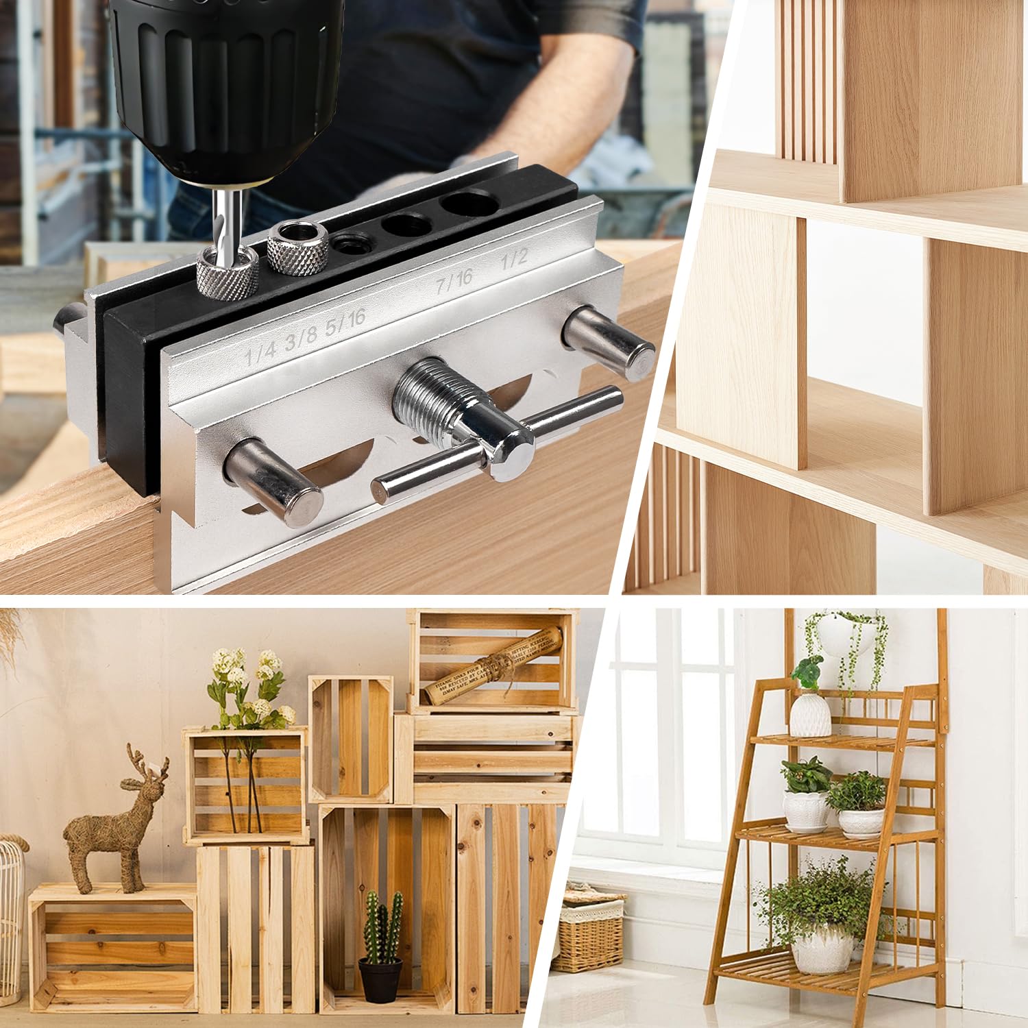 - VARIOUS APPLICATIONS: This self-centering dowel jig is perfect for a variety of woodworking projects, such as creating precise butt joints, miter joints, and edge joints. It is an ideal tool for making panel furniture like shelves, cabinets, desks, tables, as well as for repairing doors and installing railings