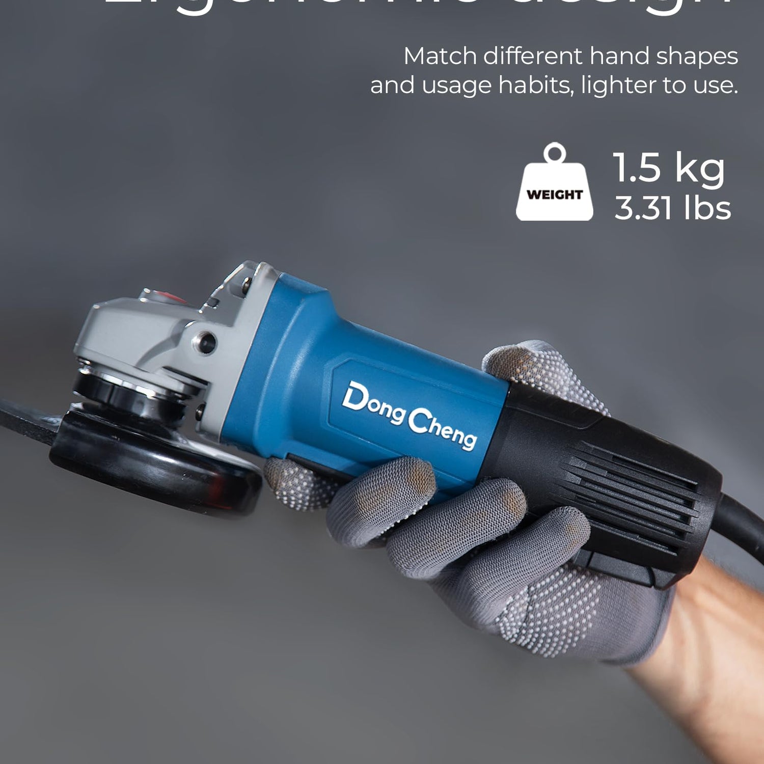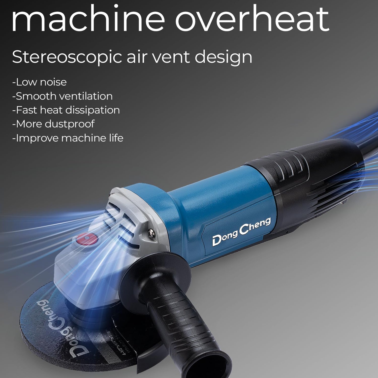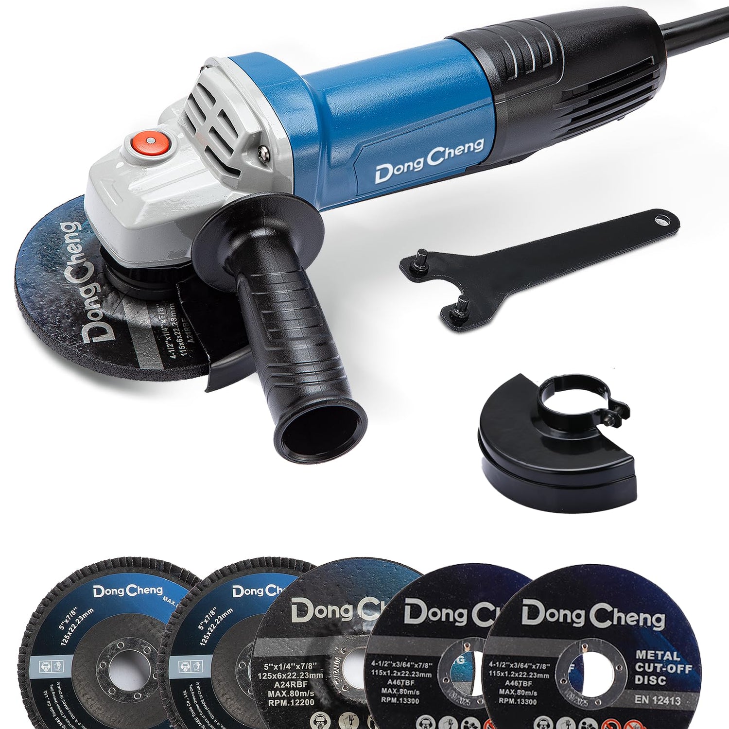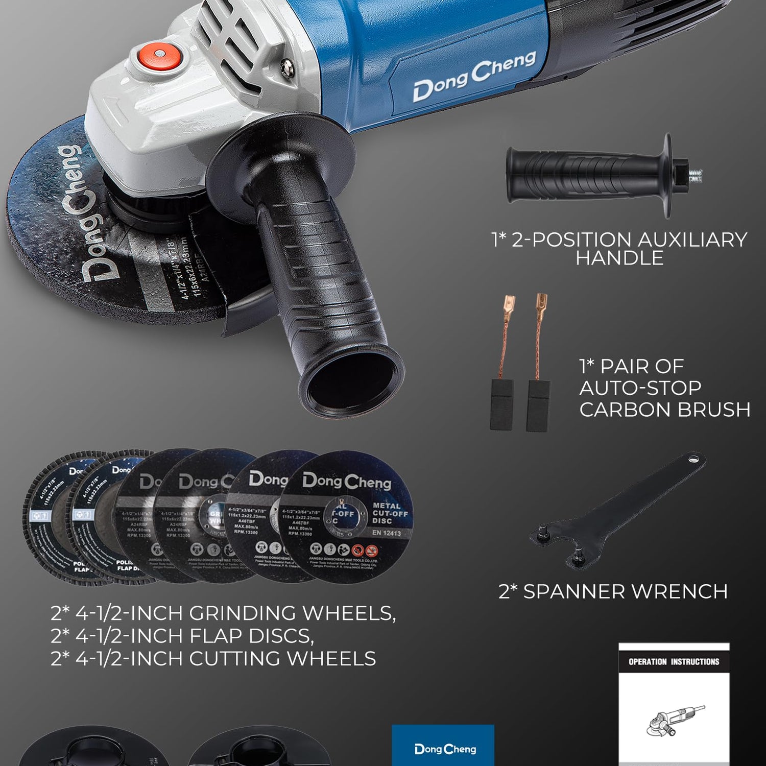 DongCheng Angle Grinder 4-1/2 inch 6.7-Amp Paddle Switch Cut off Tool 11800RPM Electric Grinder Power Tools with Cutting & Grinding Wheels, Flap Discs, Auxiliary Handle for Metal & Rust Removal