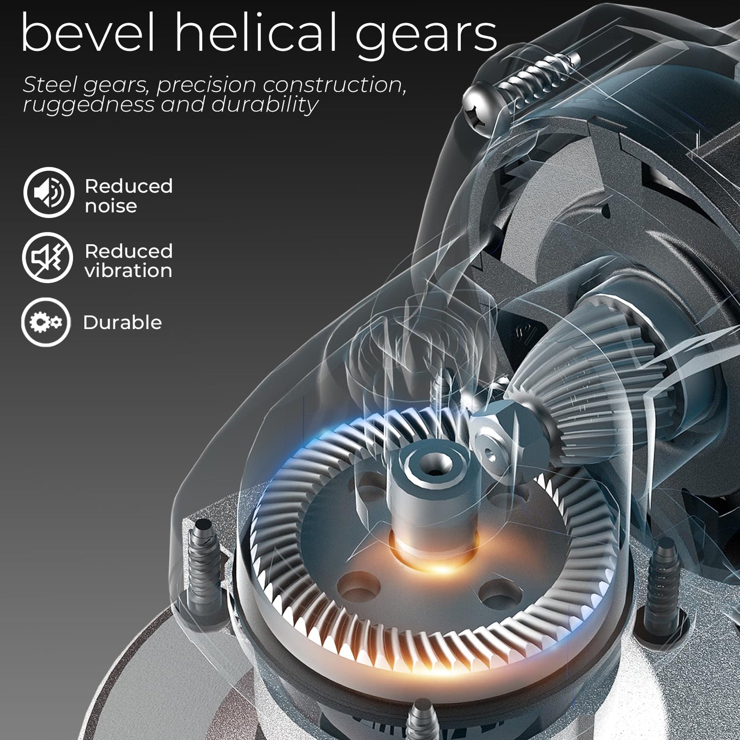 - High strength steel gears - Dual heat treatment improves gear hardness with high torque transmission and wear resistance. Helical design reduces noise and vibration, improves using time and reduces fatigue.
