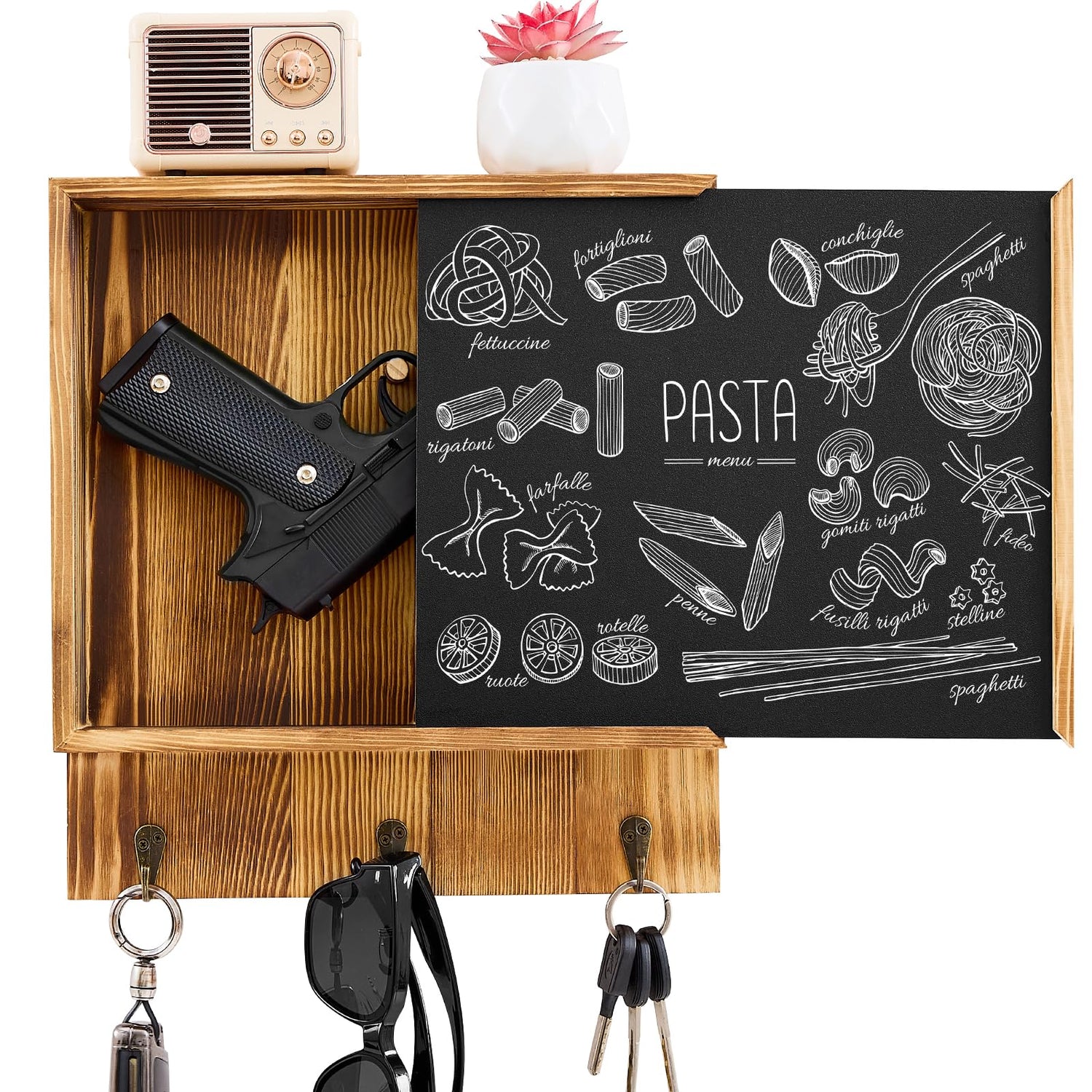- Concealed Pistol Furniture: Our wooden concealment hidden gun storage offers a concealed and secure solution for storing your pistol. With the size and style of picture frames, you can decorate your interior nicely. You can also make chalkboard paintings so you can unleash your creativity whenever you want. When closed the compartment furniture for handgun is a regular picture frame form, keeping your handguns away from children and thieves while blending in perfectly with your home décor.