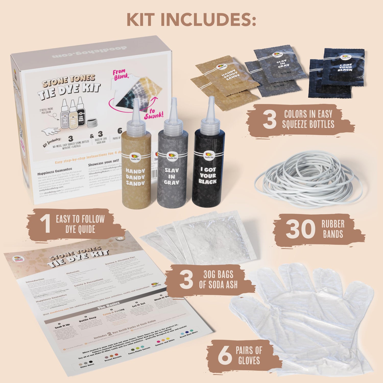 - Everything You Need: This DIY kit includes black, grey, and tan fabric dye, 6 refills, soda ash, gloves, ties, and a guide—perfect for arts and crafts and creating unique projects