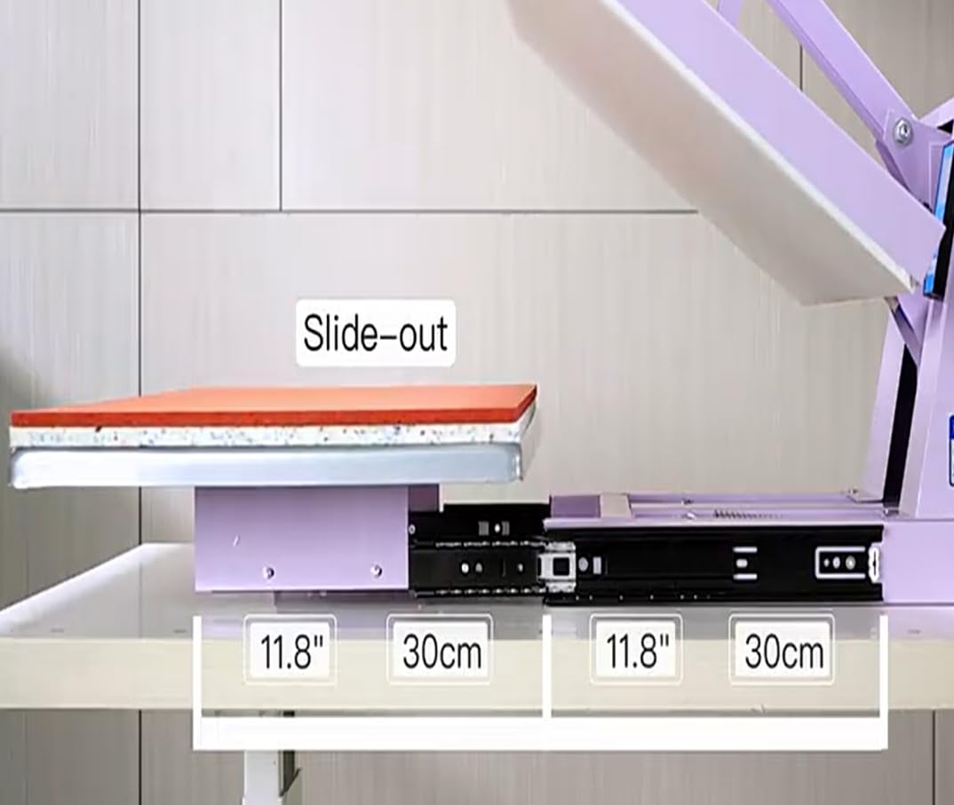 • Slide- out Lower Platen: The slide- out lower platen can avoid scalding, easy to pull and push