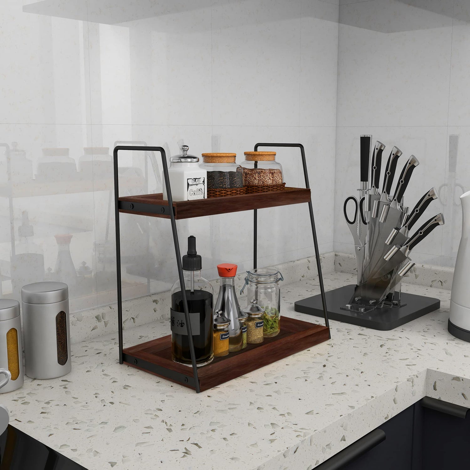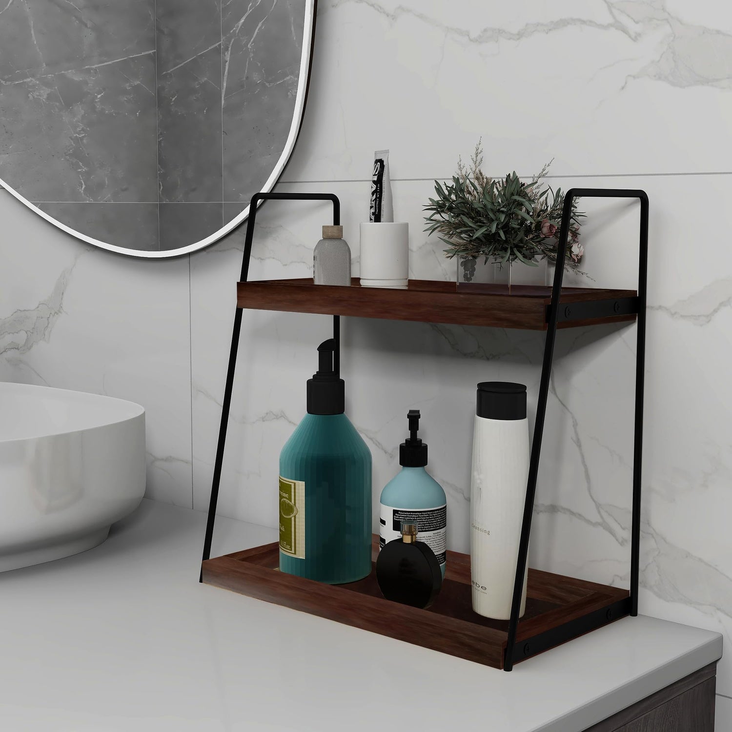 Dorhors 2 Tier Bathroom Counter Organizer Storage,Vanity Organizer for Bathroom Counter,Wood Standing Rack for Kitchen(Walnut)