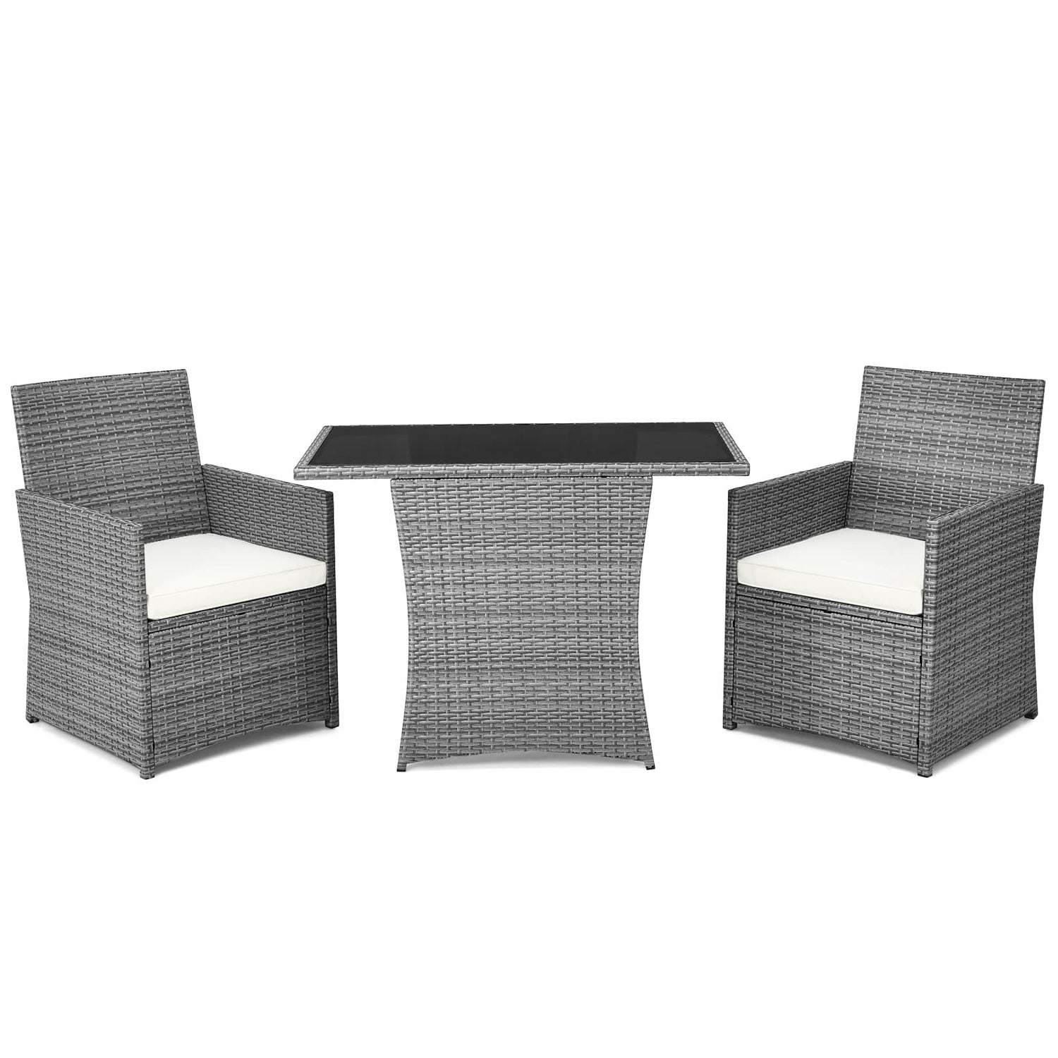 Details: With curved backrests, comfy armrests and soft cushions, this outdoor bistro set provides optimal comfort for outdoor relaxation. If you accidentally spill a drink on the table or cushions, don't worry. The smooth tabletop with durable tempered glass is easy to clean. And the cushion covers with zipper design can be detachable for easy maintenance. After using it, you are able to store 2 chairs under the table to save your outdoor space.