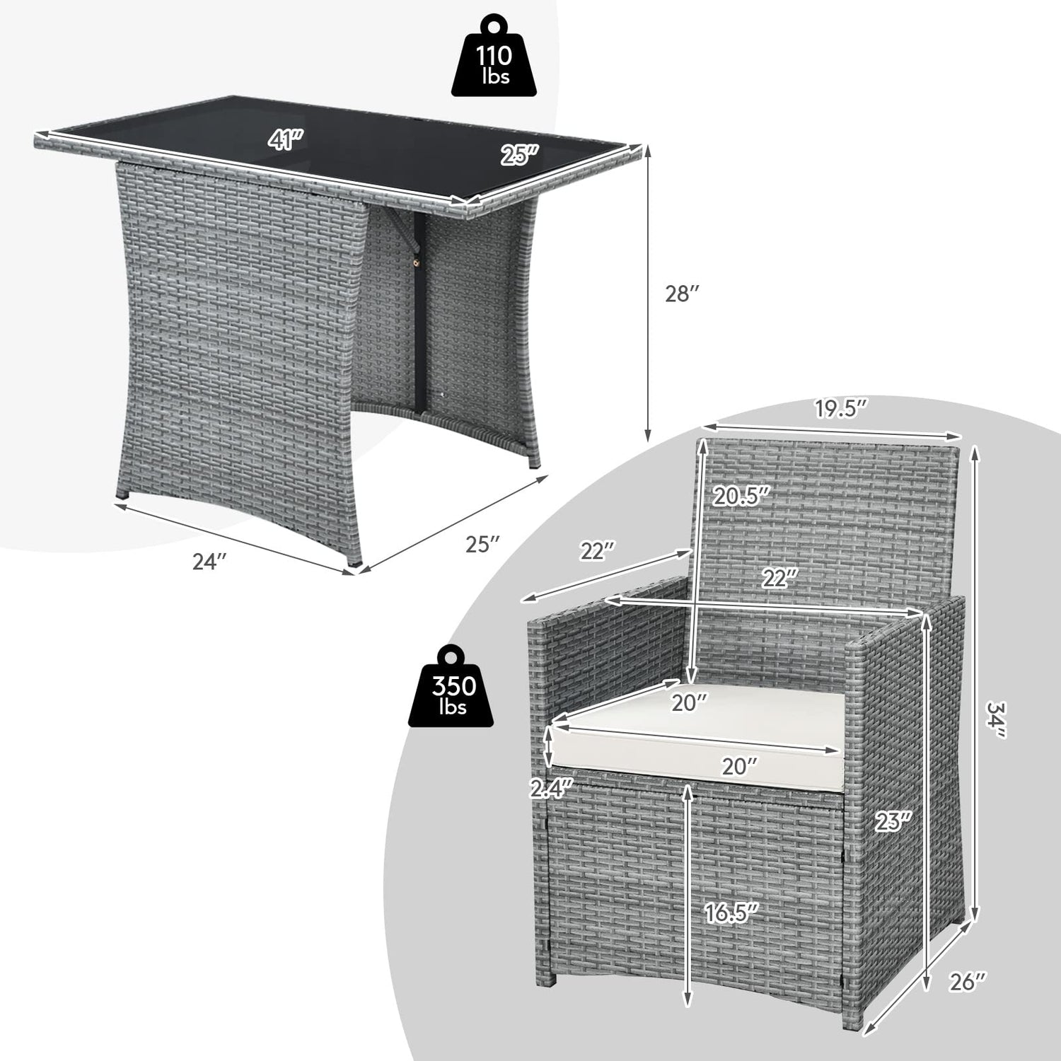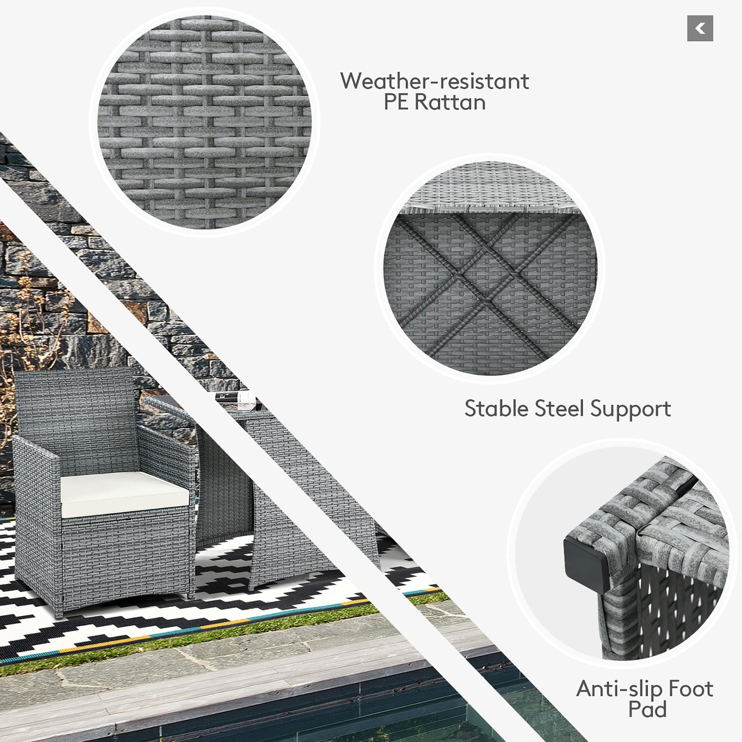 - 【Space-Saving Design】 The whole 3pcs outdoor rattan set is designed with a unique frame for convenient storage. The two single chairs and cushions all can be hidden under the table to save more precious space when the set is not in use.