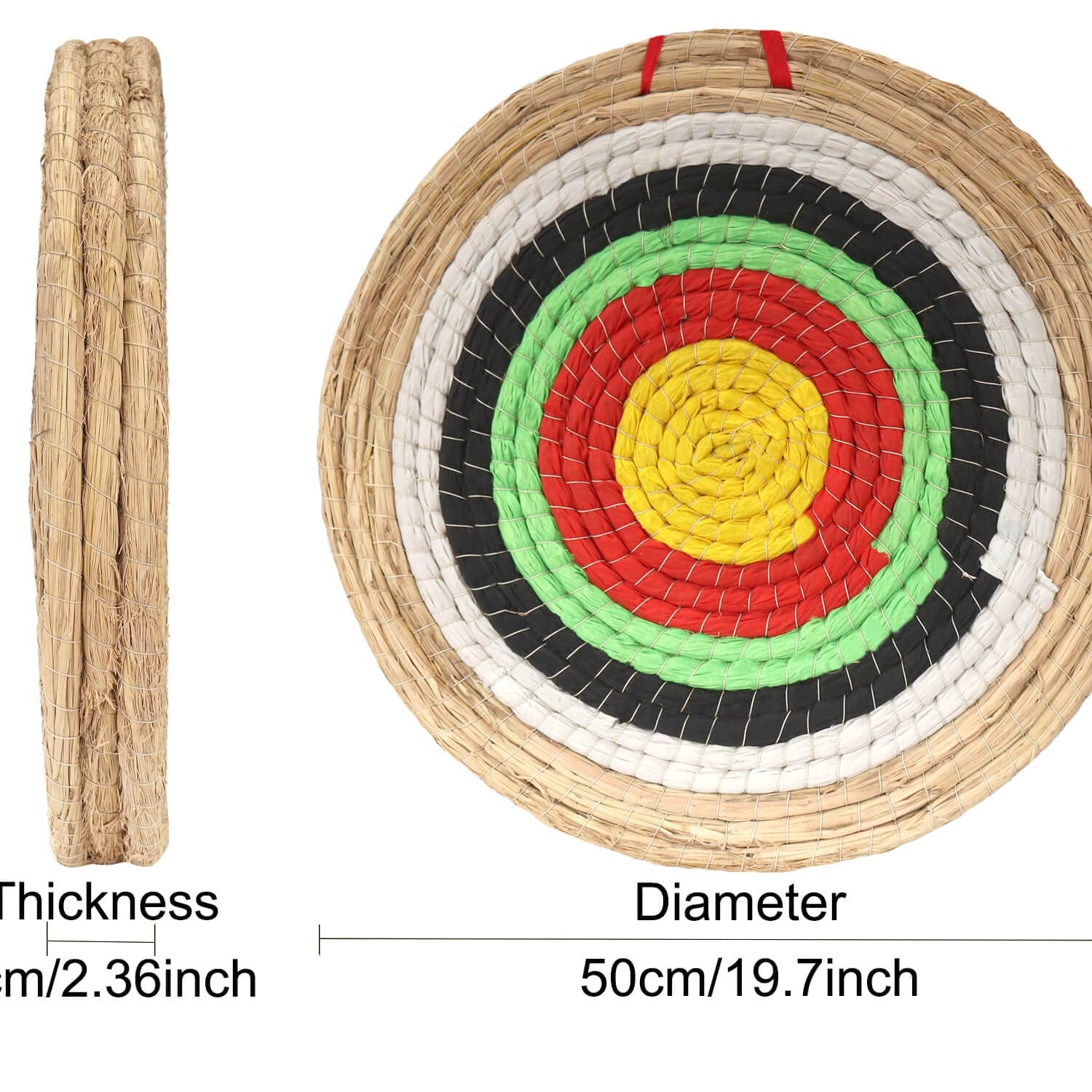 - TARGET SIZE(APPROX.): (19.7" x 19.7" x 0.78" for 1 layer) (19.7" x 19.7" x 2.3" for 3 layers)(19.7" x 19.7" x 3.9" for 5 layers)(19.7" x 19.7" x 5.5" for 5 layers).The archery target is handmade by farmers, not the standardized production process of the factory, so there will be a certain error in the size, so please be careful to buy if you mind.