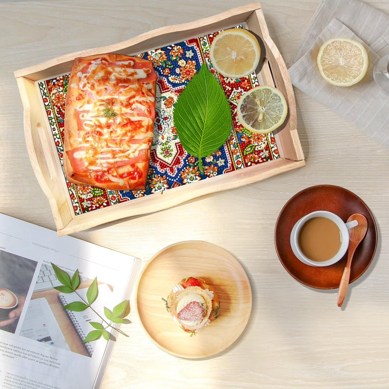 - Versatile and Functional: Our wooden trays with handles are perfect for a variety of uses, from intimate dinner gatherings and stylish bar sessions to leisurely breakfasts in bed. This versatile tray adds a touch of sophistication to any setting. It's ideal for serving, working, decorating, and organizing your home goods, such as candles, jewelry, makeup, perfumes, candies, books, fruits, vegetables, and barware.