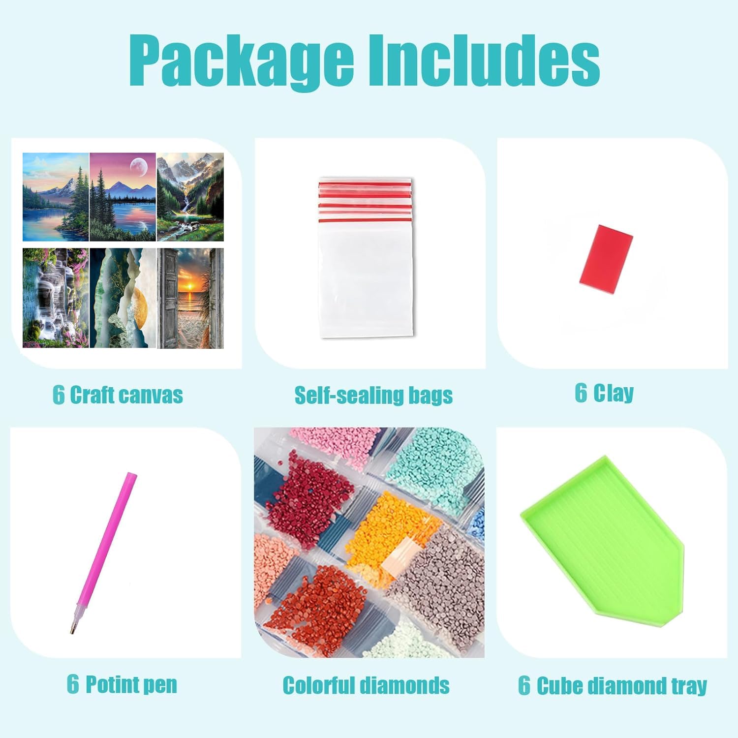 - Round Diamond Art Kits: Our pack of 6 adult 5d diamond painting kit is a masterpiece in itself, for those who love diamond art with round diamond bits neatly labeled, a diamond smudge pen, wax, and tray, you have everything you need to create stunning diamond art. Great material acrylic diamonds are vibrant and attractive, adding a dazzling visual appeal to your creation