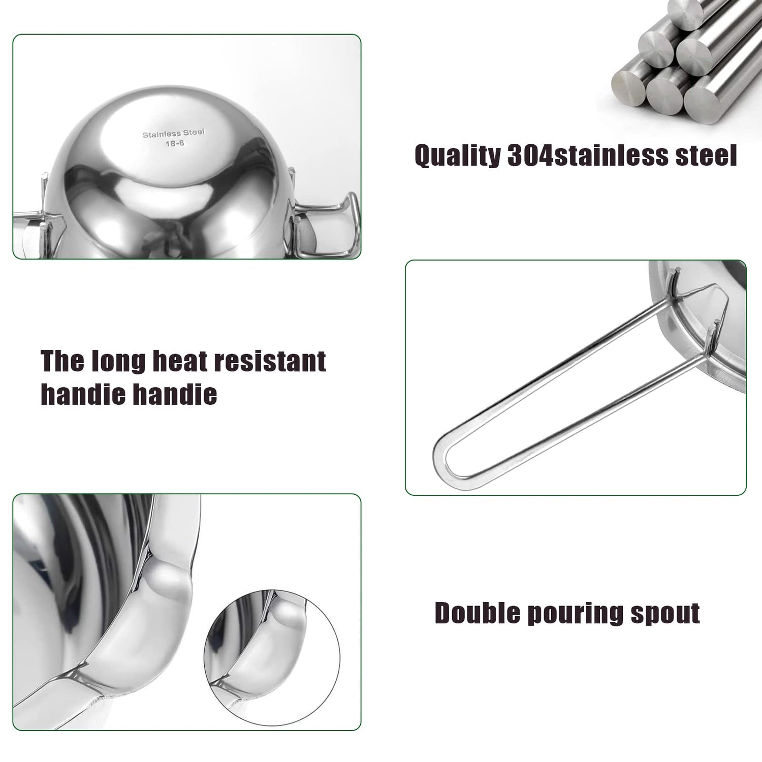 - 【Multiple Functional Double Boiler Pot Sets】- Ideal for melting chocolate, candy, butter, cheese, candle, wax, soap base; and cooking lighter sauces and other delicate tasks with indirect heat.