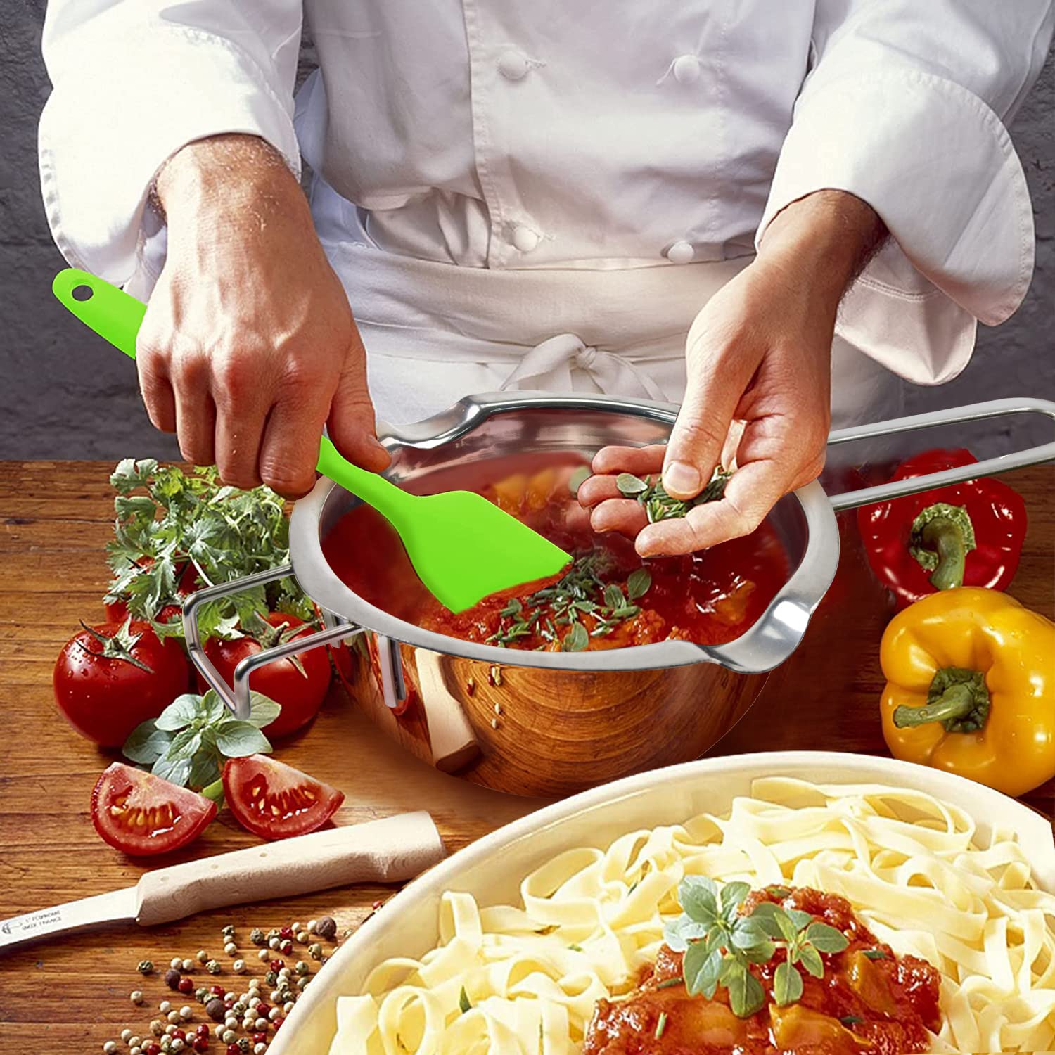 - 【Economical,Practical and Cost-Effective】We consider you need small double boiler for flexible control, and the biggest capacity will be very efficient in melting lots of chocolate,wish the 2 sets pots will satisfy your demands in making candy and chocolating,also the silicone spatula is very good tool,the spatula works well from the small jar to the large mixing bowl and are invaluable in your kitchen
